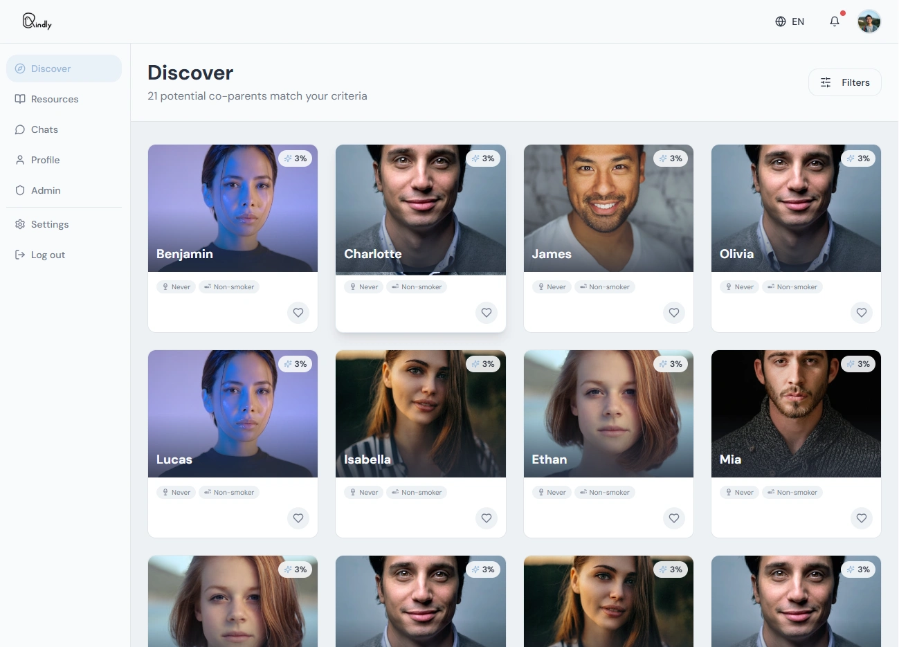 Invite-only platform for intentional co-parenting: match with a like-minded co-parent, build a profile, and message matches — with privacy and structure.