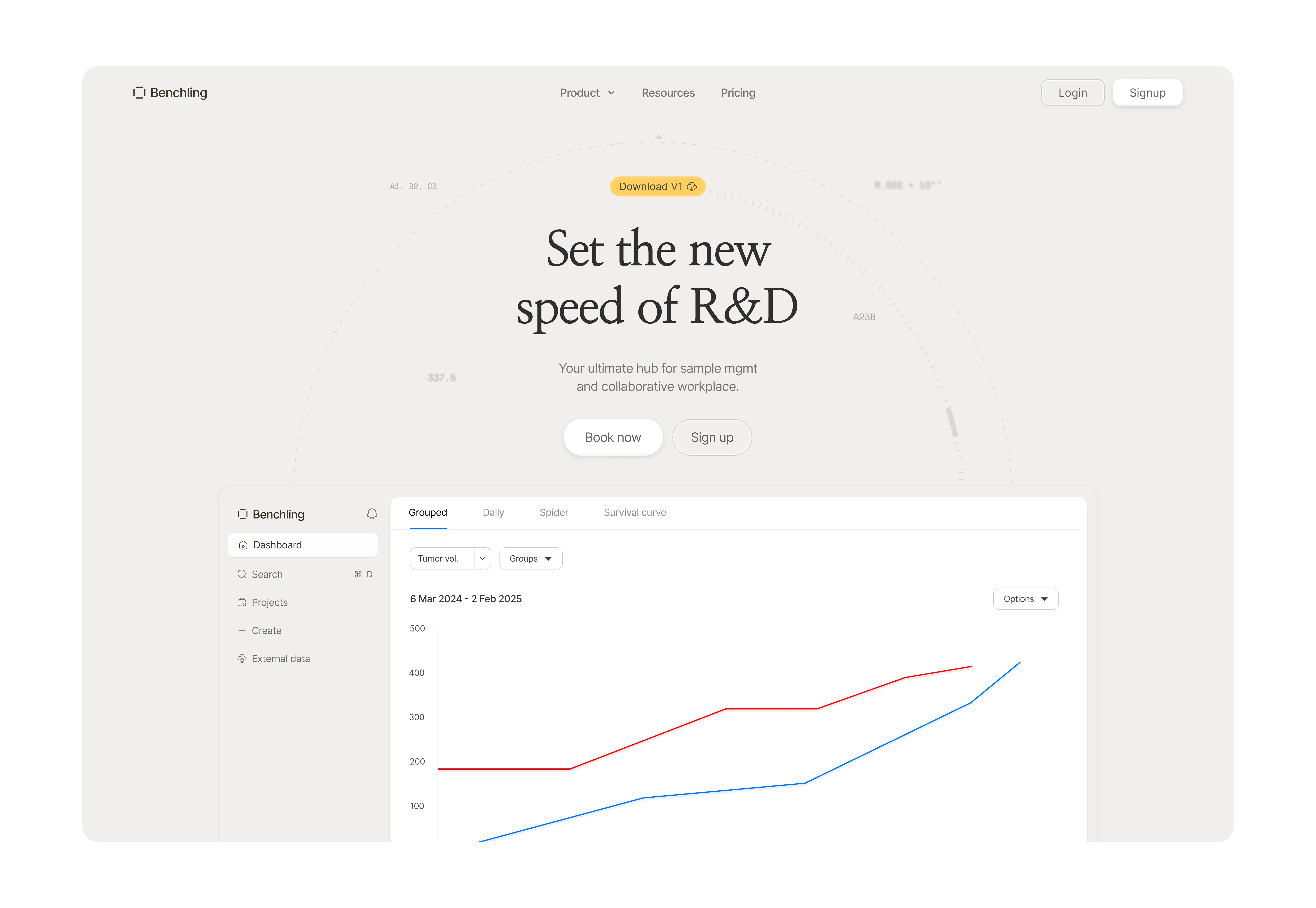 This design is for Benchling, a platform focused on accelerating research and development (R&D) processes. Its clean interface puts emphasis on both clarity and data-driven insights.