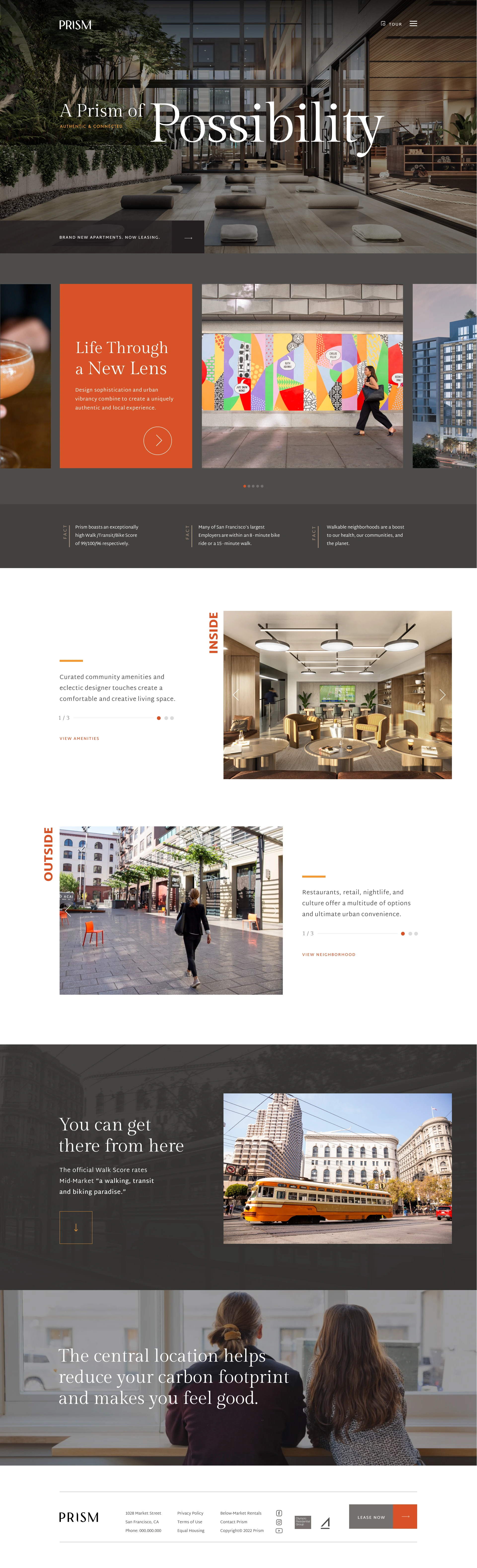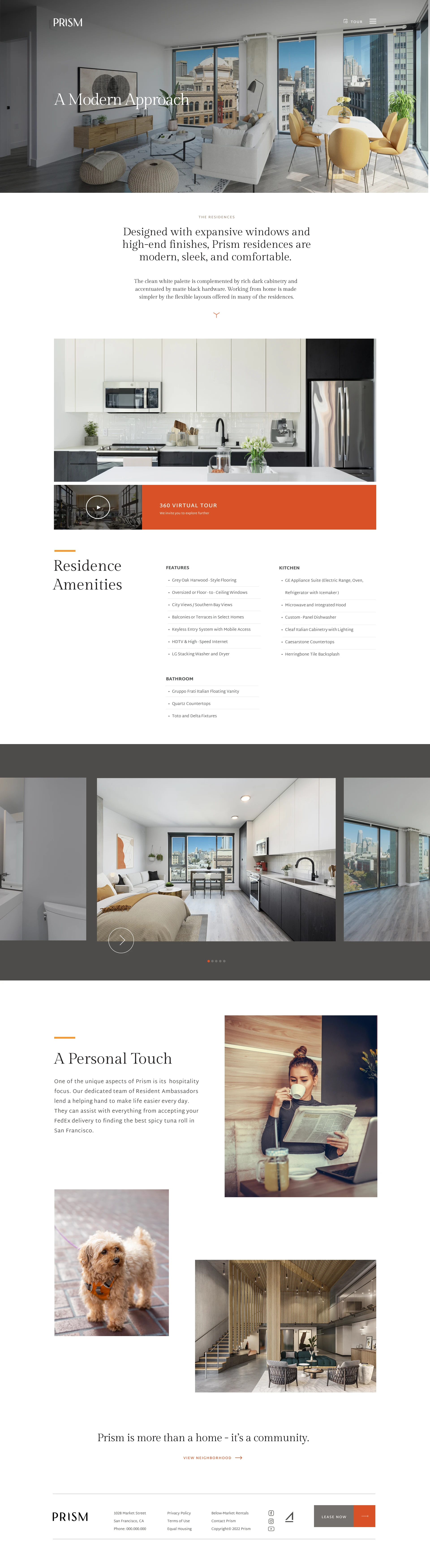 Prism Apartments website design. Modern, sleek and sophisticated living that required a design that looks the same.