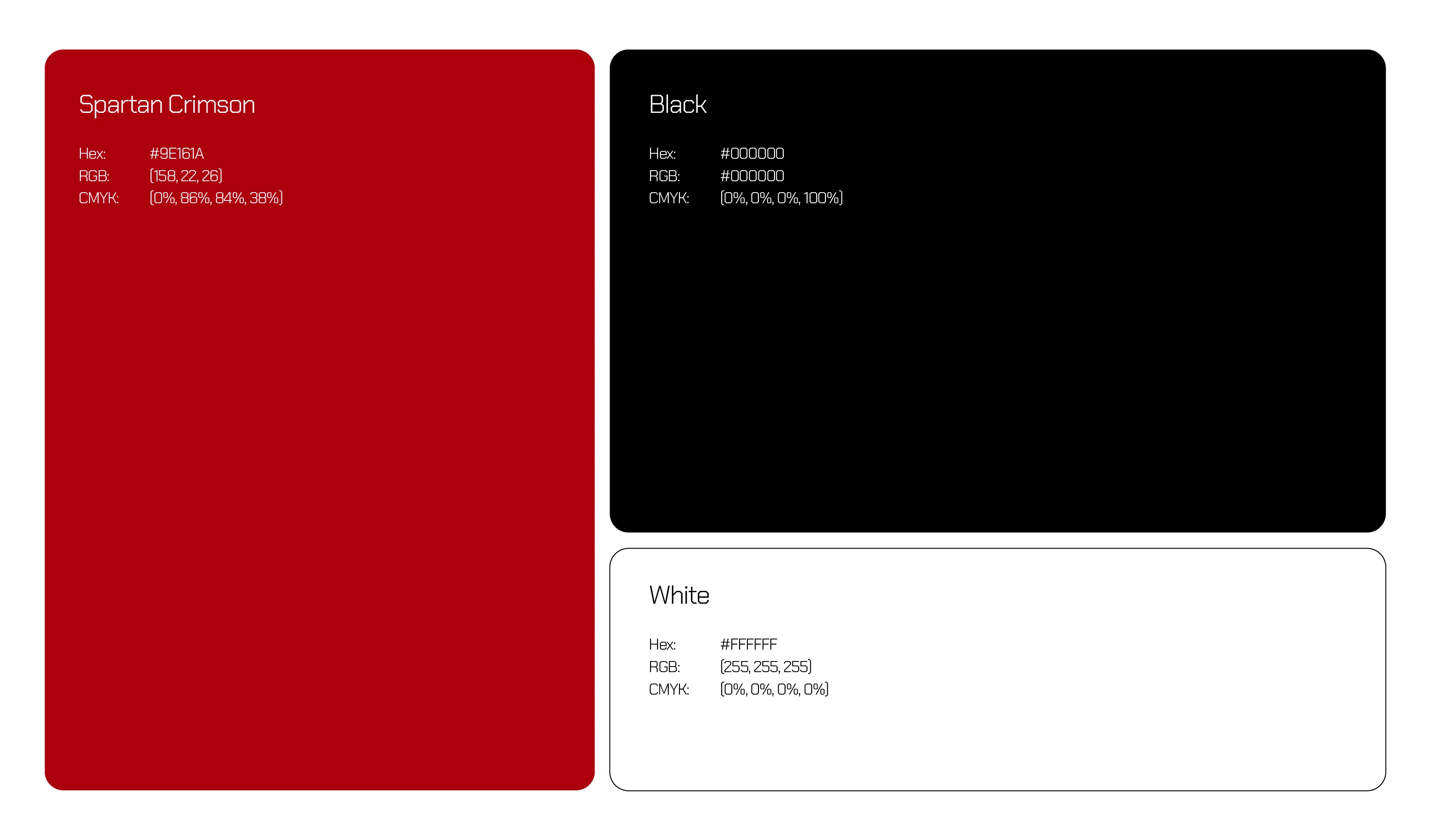 Spartan Crimson (#9E161A) → boldness & strength.