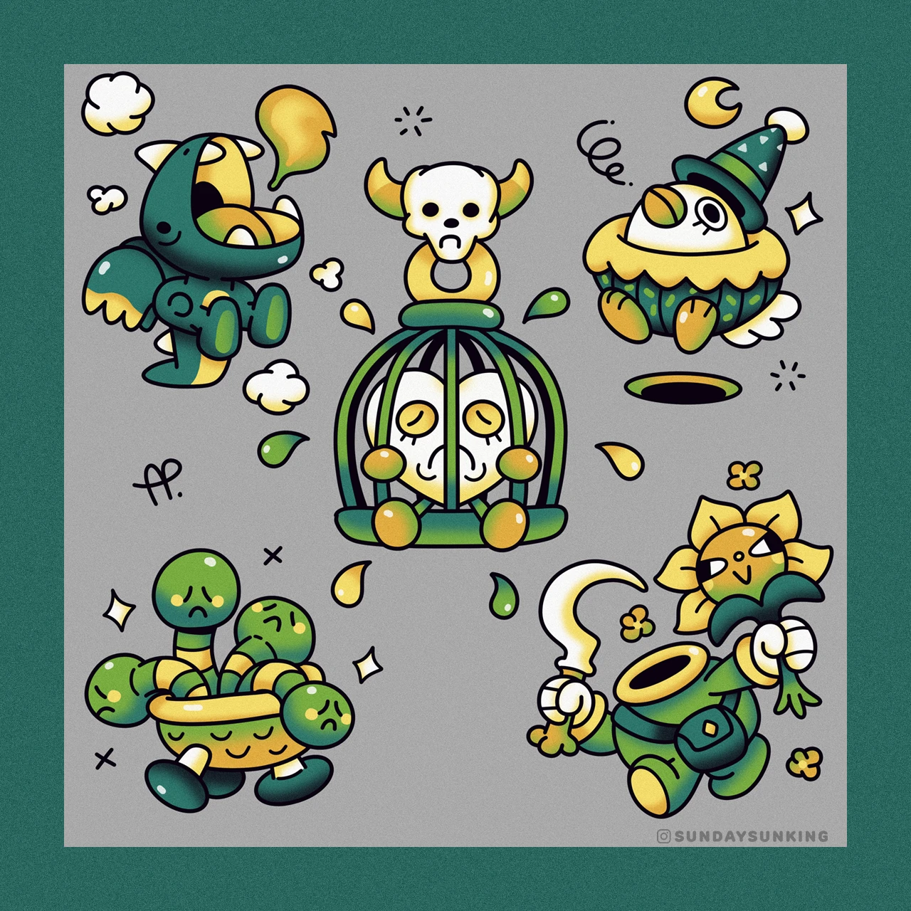 A project to design a set of characters, tied together by color, style and theme. Made to inspire feelings of adventure, gentle sorrow and still positive vibes.