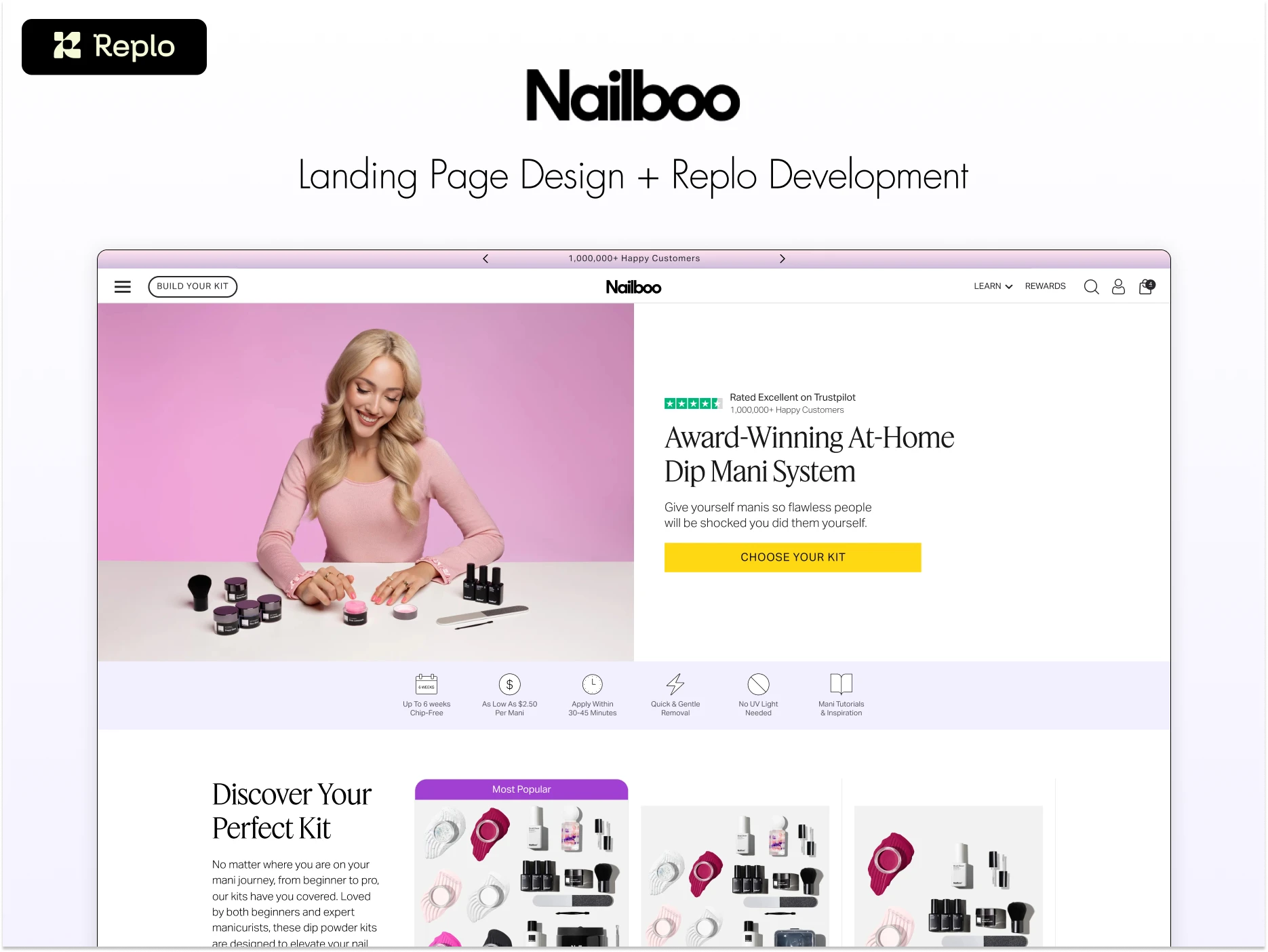 Comparison landing page for Nailboo Dip Kits.