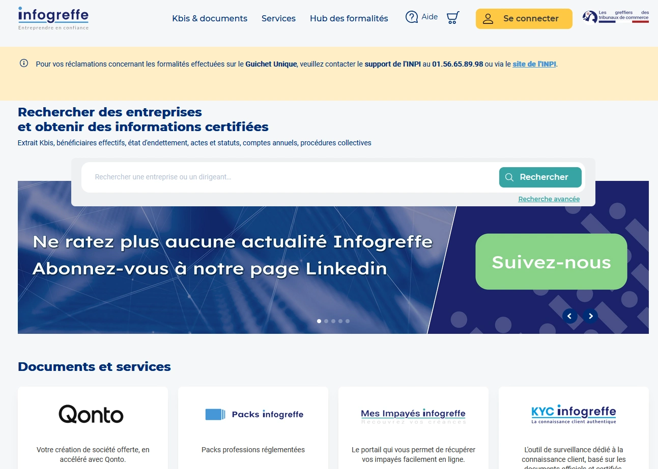 Infogreffe is the online portal for the commercial courts' clerks in France. It offers a wide range of services related to business information, including access to legal documents, company financials, and other official records.