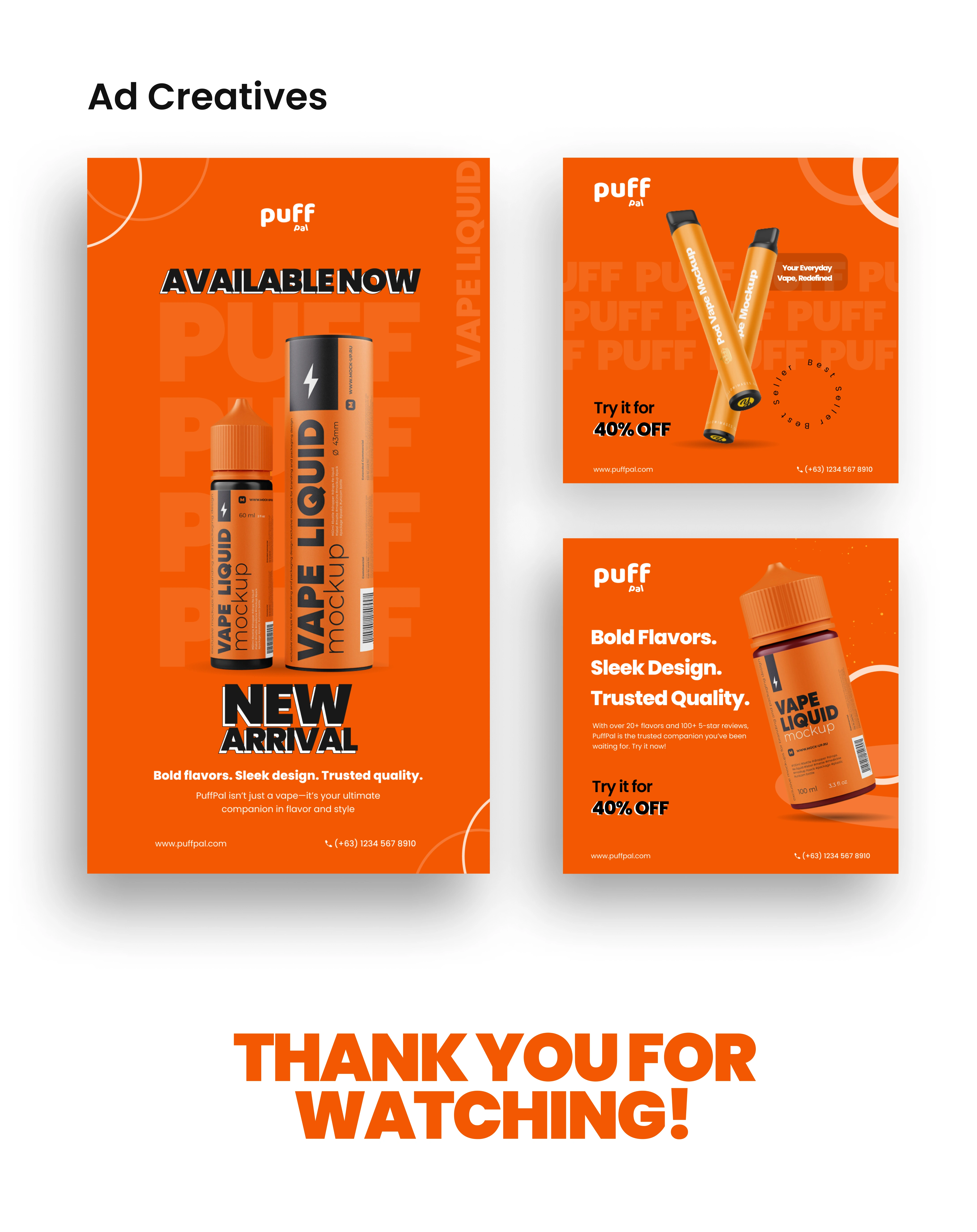 Simple Landing Page with Ad creatives for a Vape Product