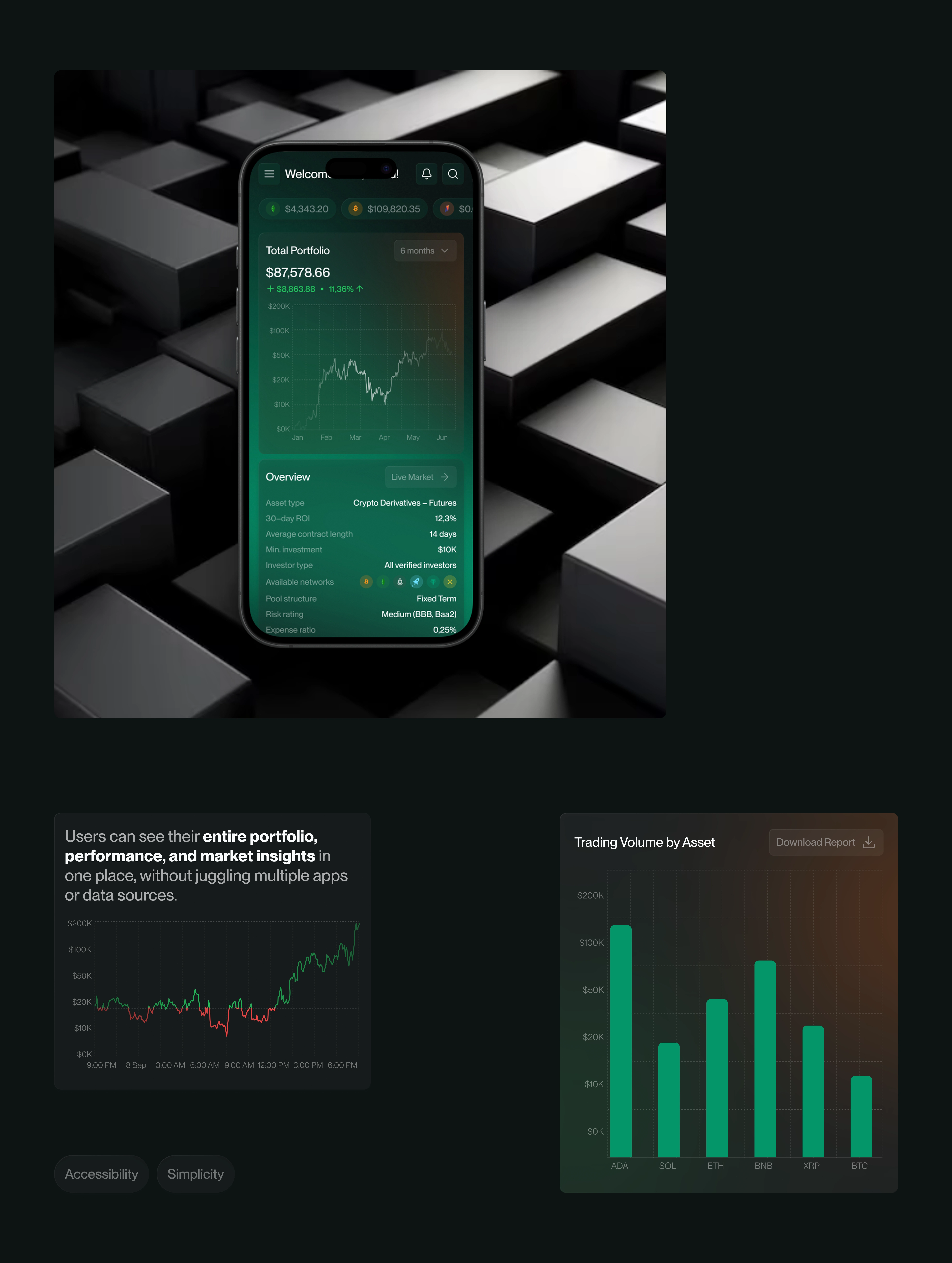 ✅Solution 1: Designed a unified dashboard that aggregates all assets across wallets and exchanges, giving users a single clear overview.