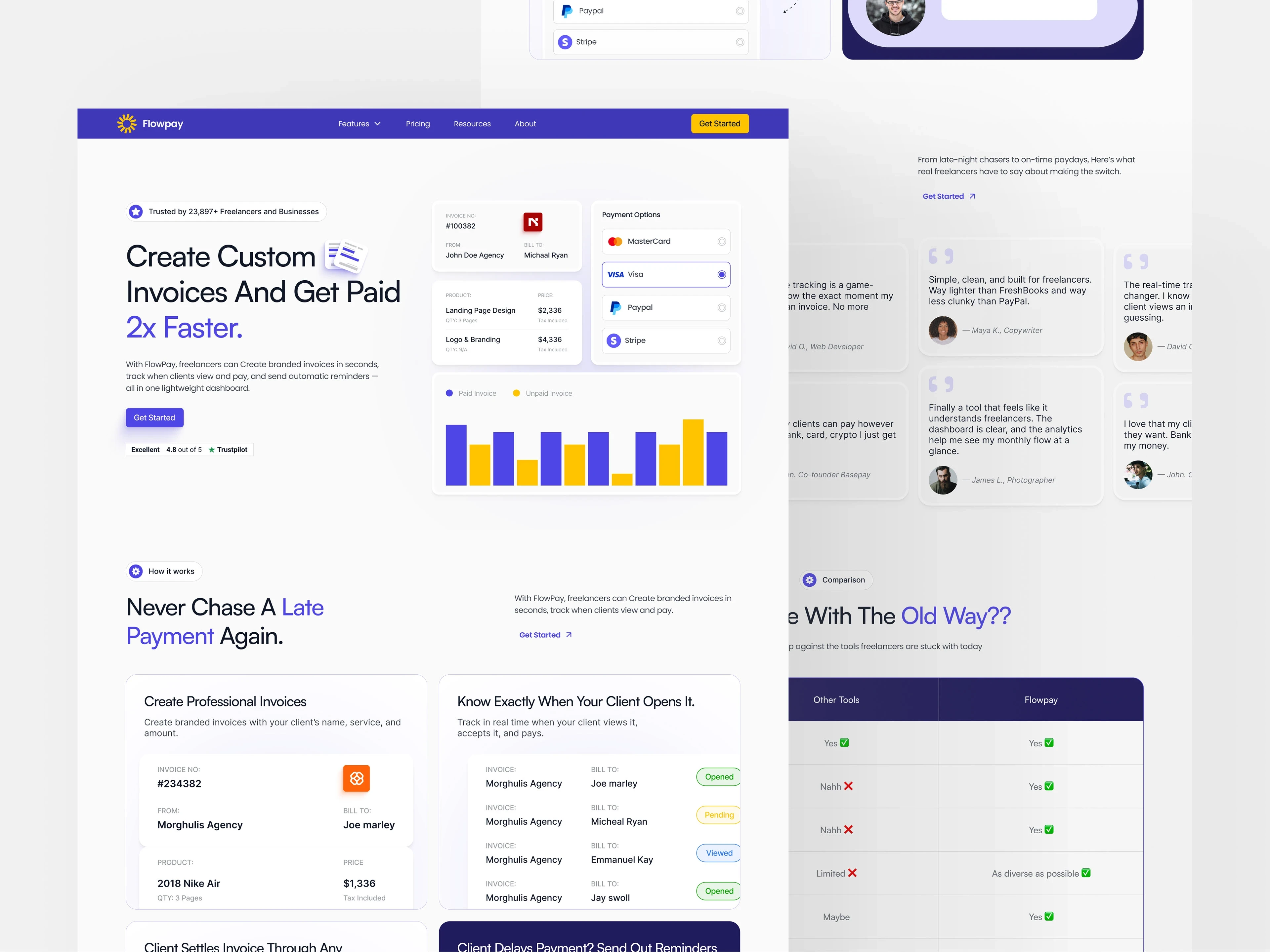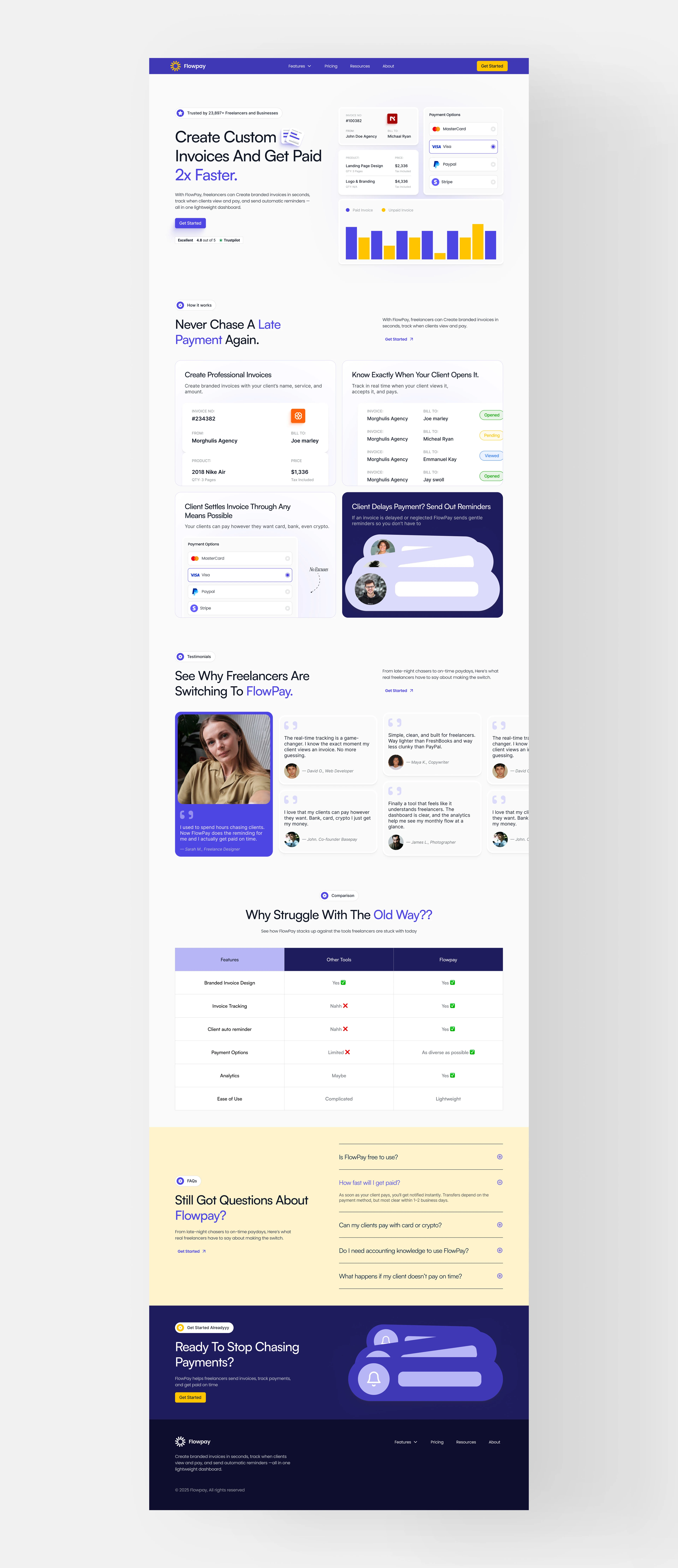 Clean landing page design for Flowpay