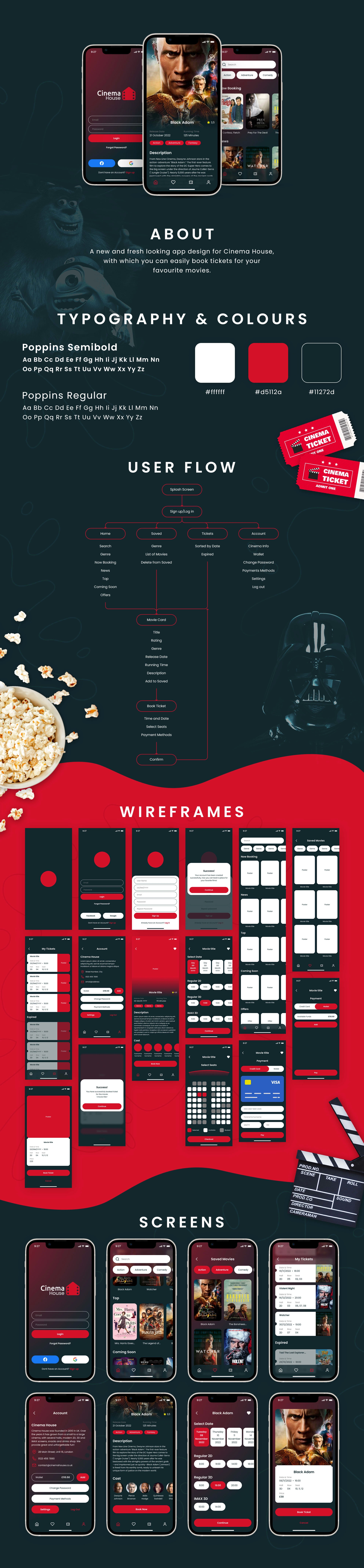 A new and fresh looking app design for Cinema House, with which you can easily book tickets for your favourite movies.