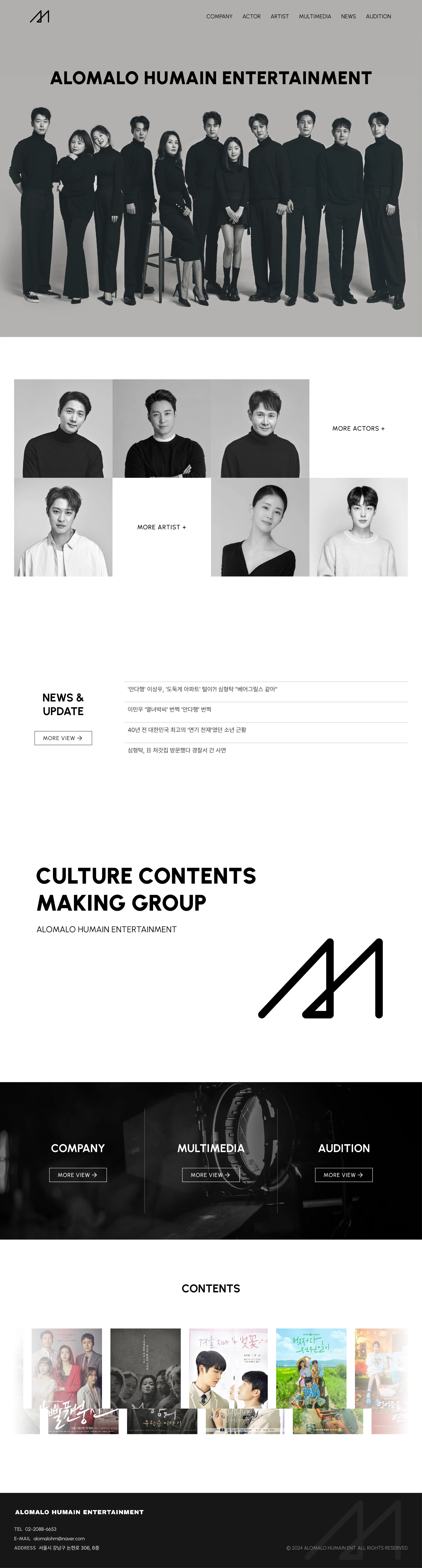 Created with Framer, this brand site represents a Korean entertainment company, highlighting its identity through clean visuals and structured layout.