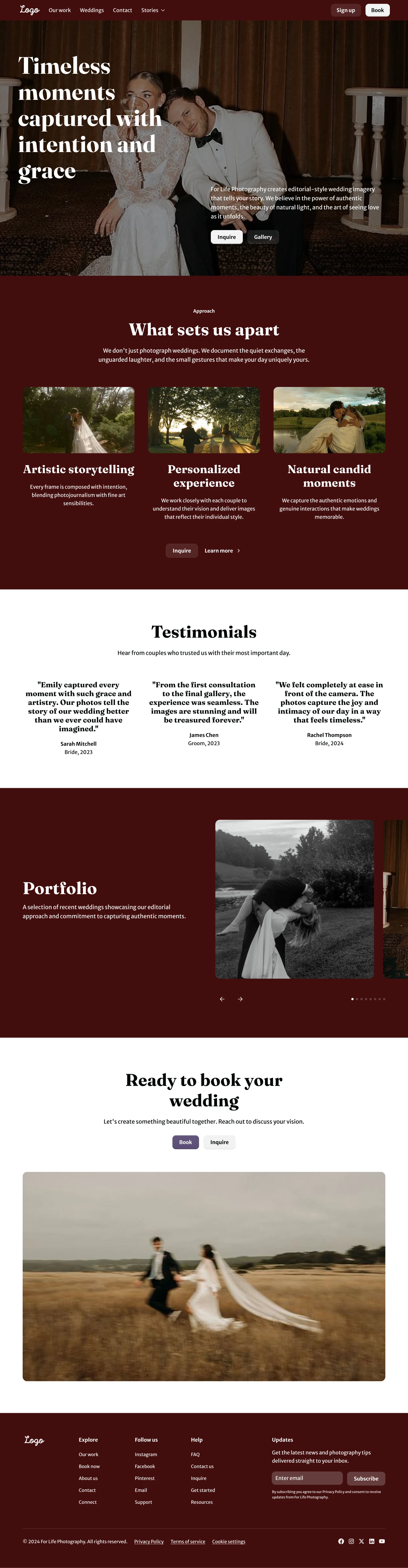 Designed a responsive wedding photography landing page in one day using Figma and Relume. Demonstrates my ability to create sites quickly for clients.