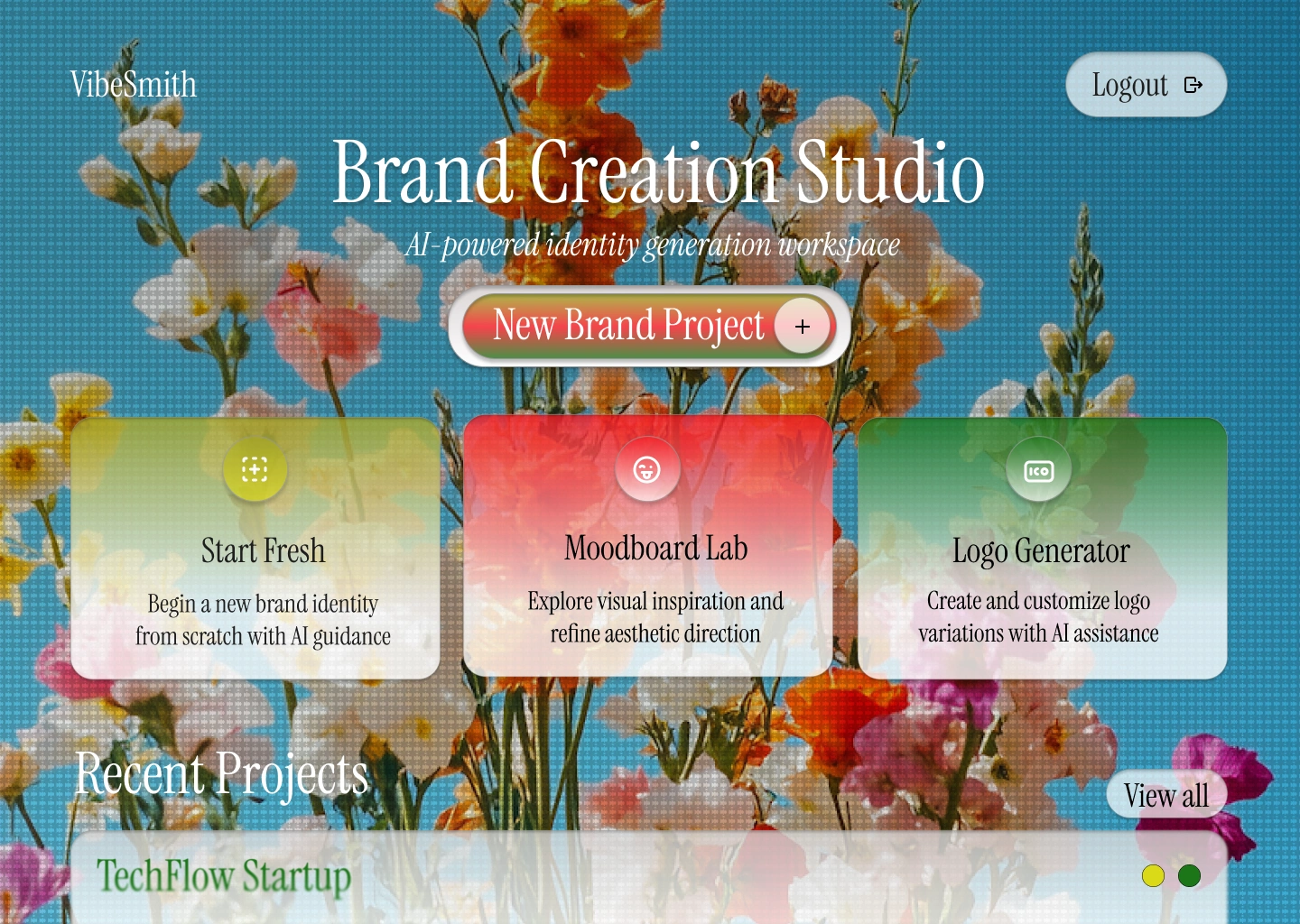 The goal was to create a clean, minimalist workspace that helps users create a complete brand identity system in minutes.