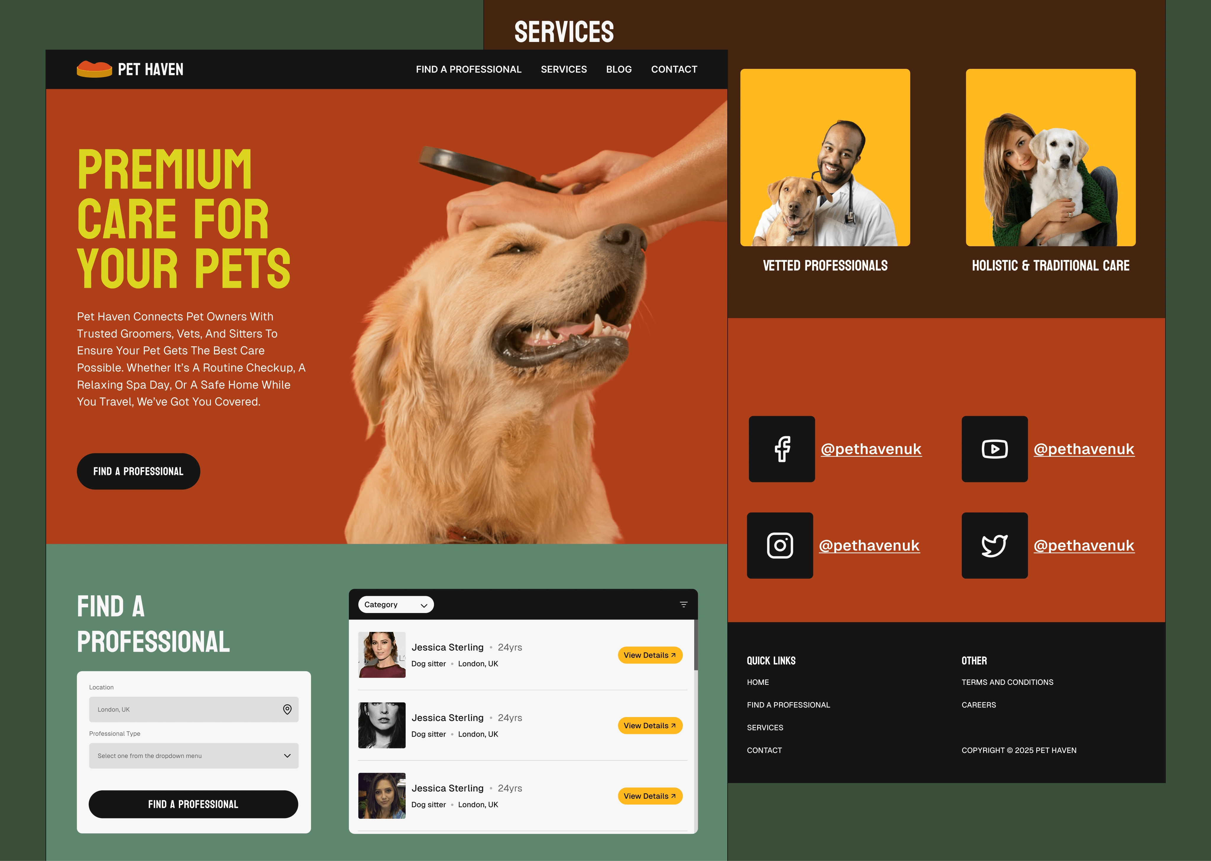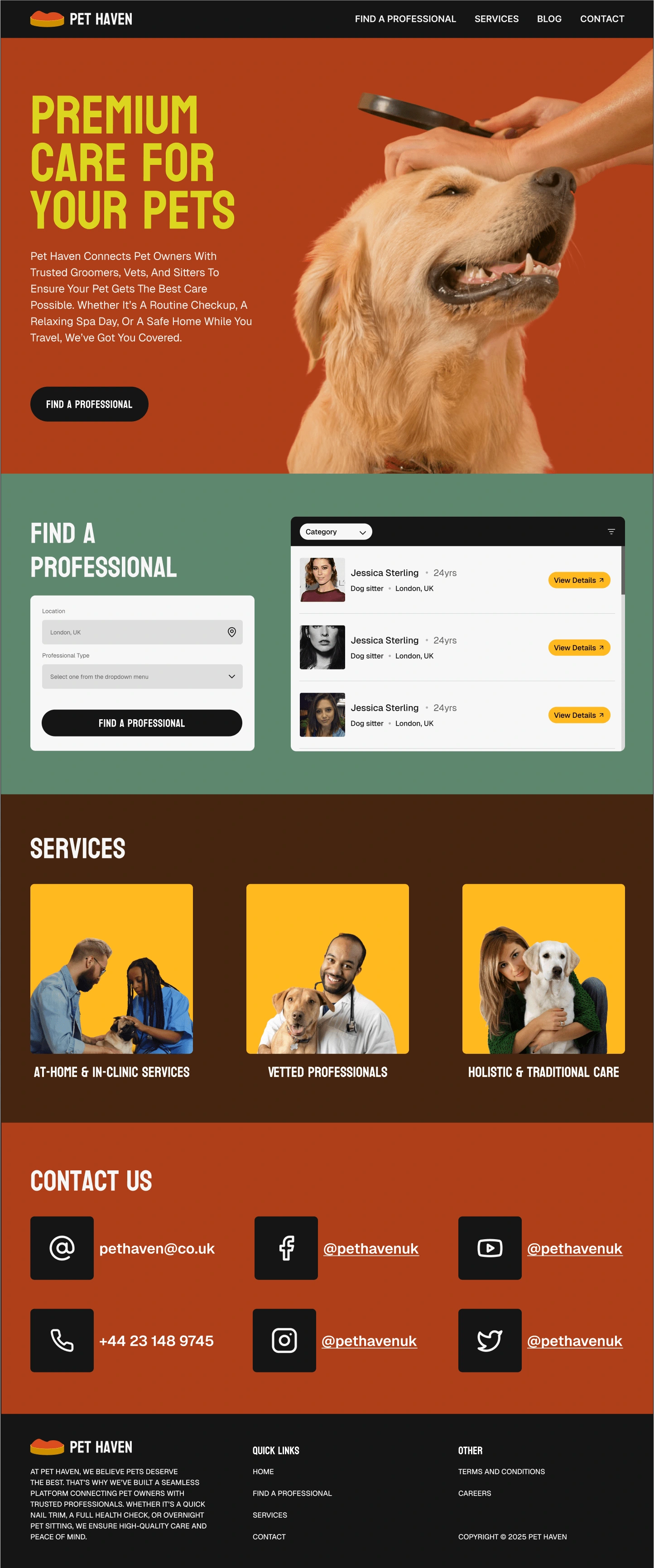 Designed a landing page for a platform that connects pet owners with vets, caretakers that are reliable and professional.