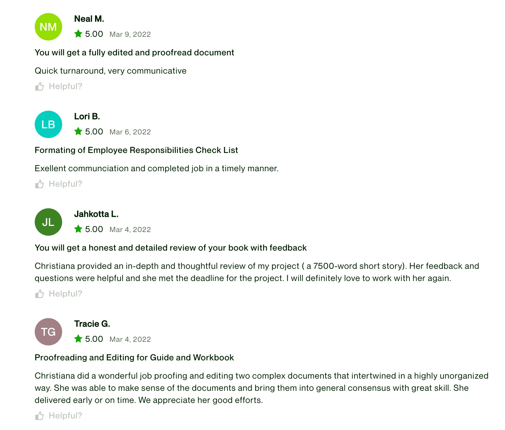 Since I am new to this platform, I have included reviews from former clients on another platform.