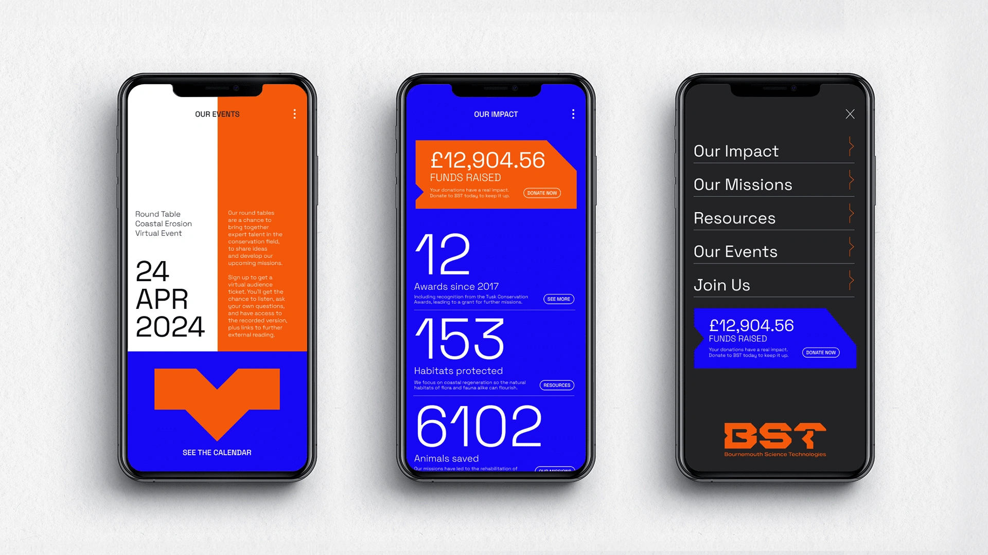 A compact app launched this visual revamp. I designed it’s navigation UI to prioritise donations to the organisation, and information on the missions for conservation, using a system developed from logo design and animation.