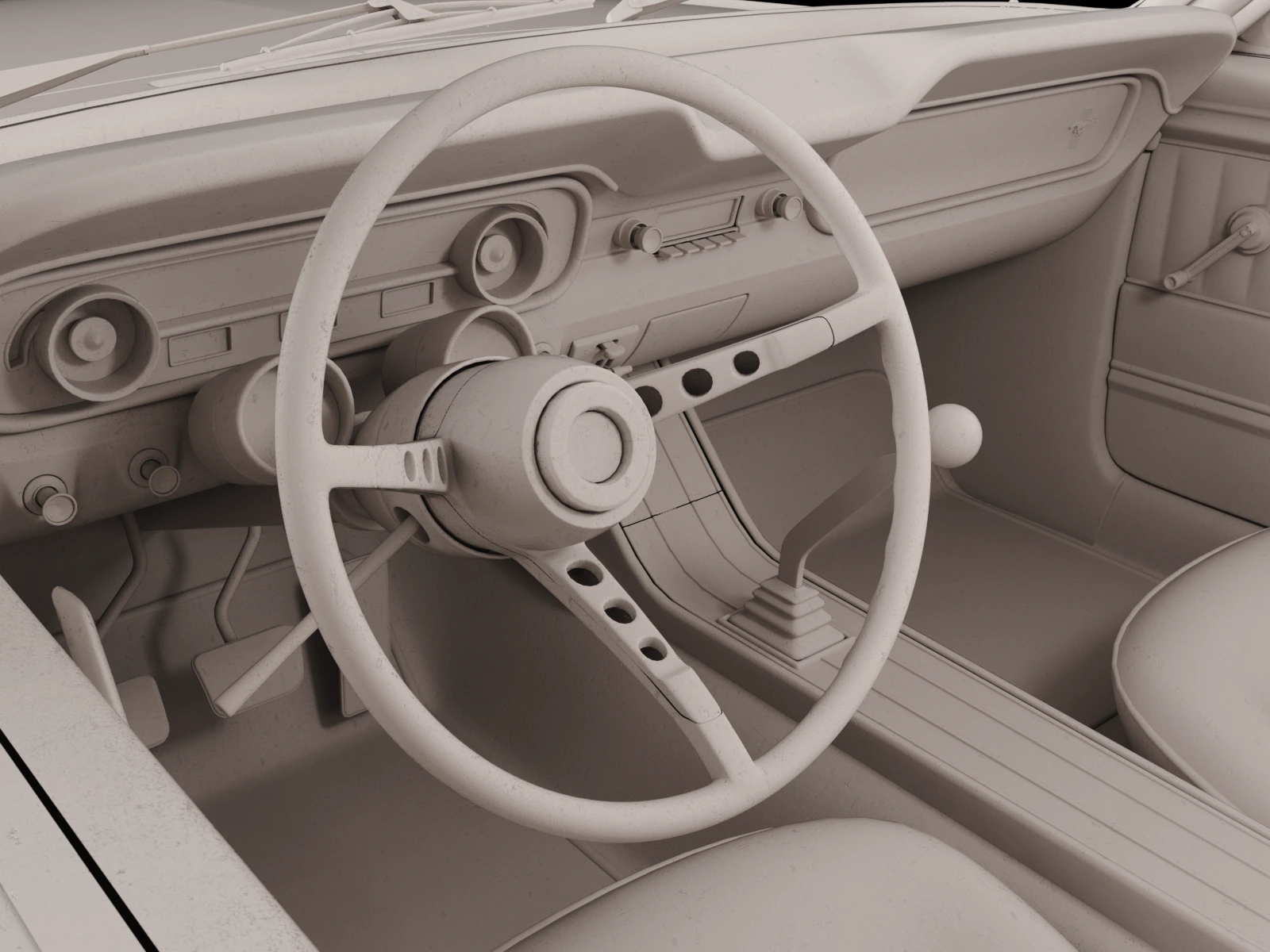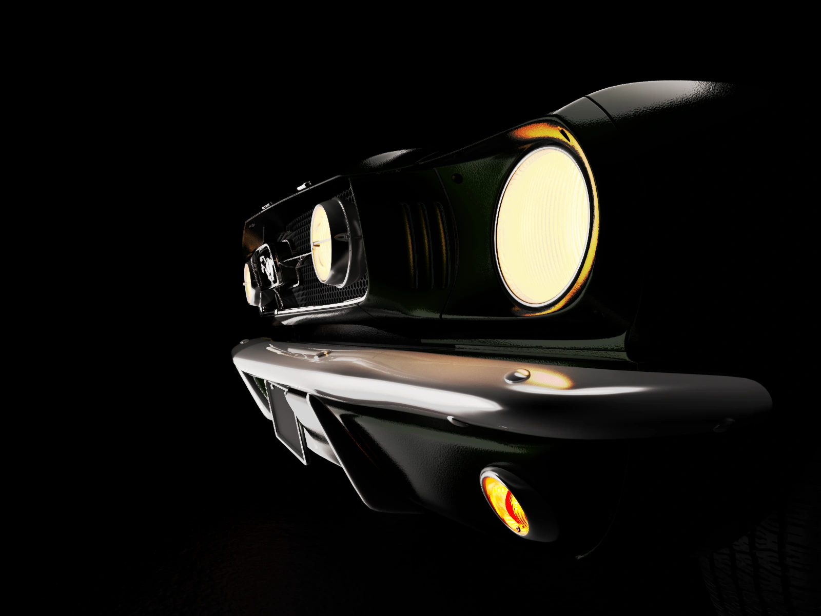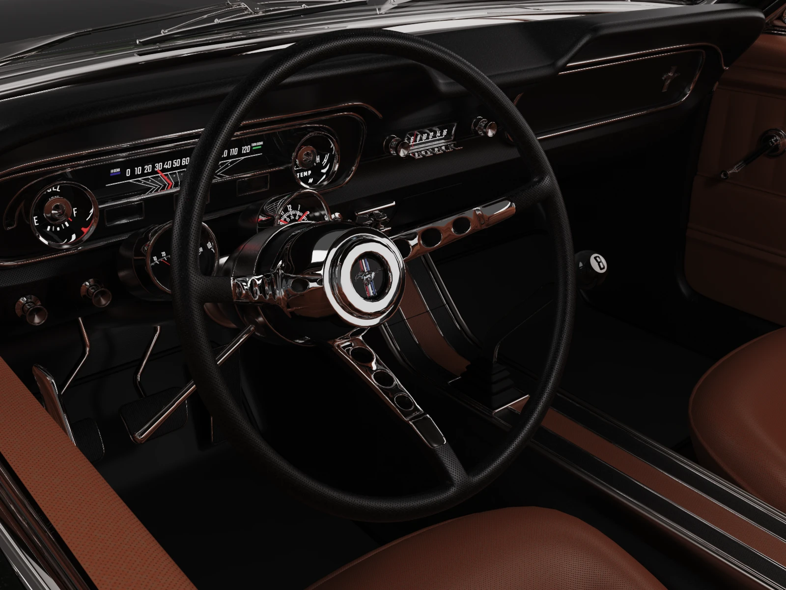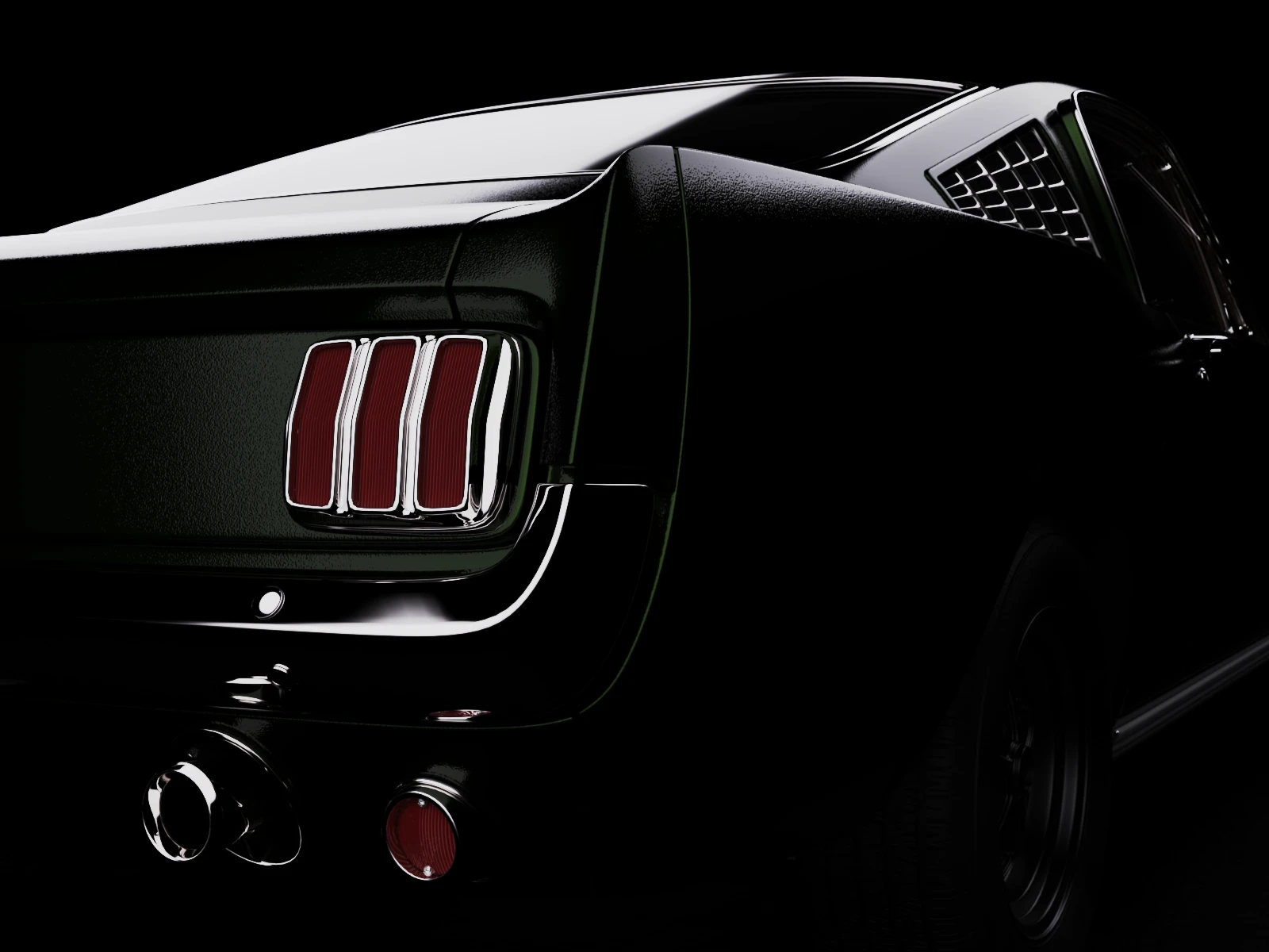 CGI visualization of the classic 1967 Ford Mustang Fastback, focusing on detail, materials, and automotive realism.
