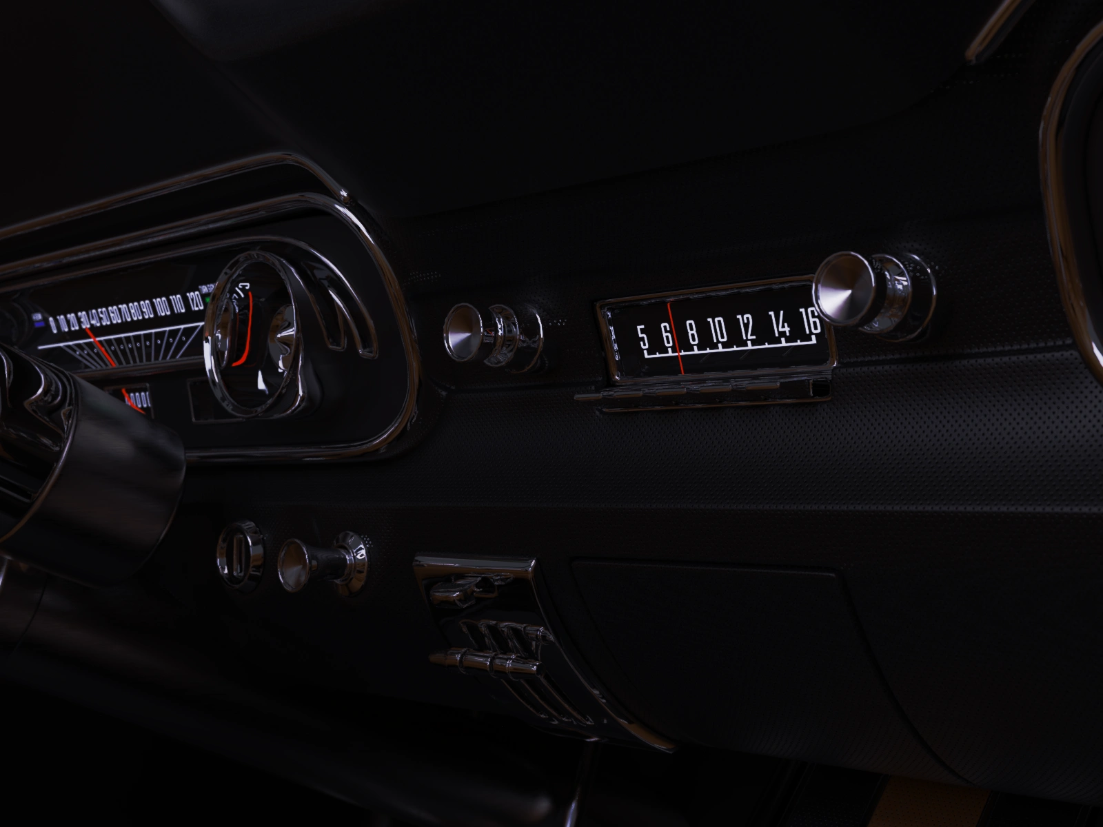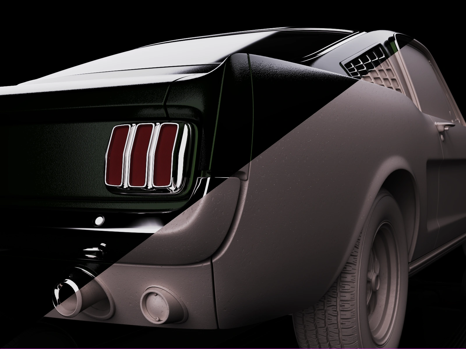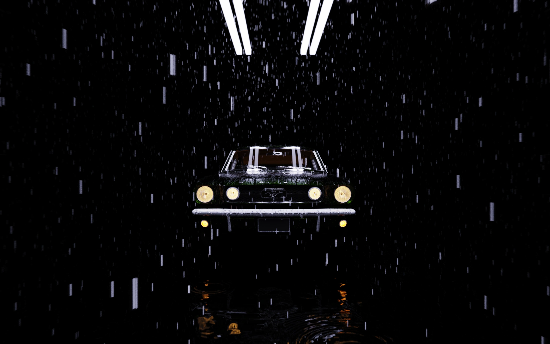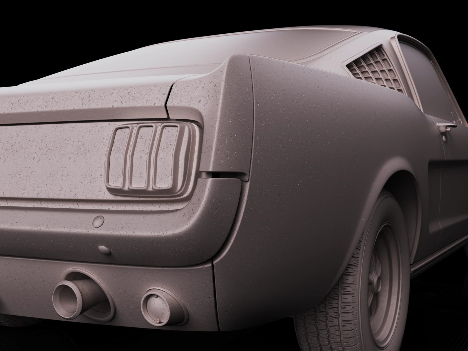 CGI visualization of the classic 1967 Ford Mustang Fastback, focusing on detail, materials, and automotive realism.