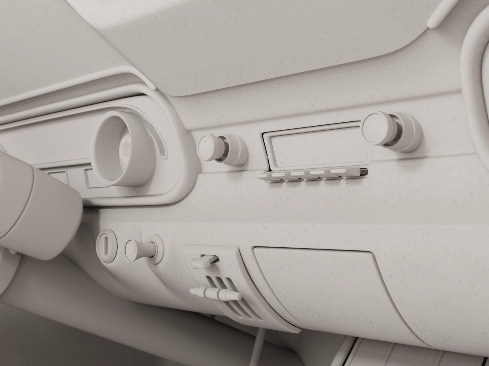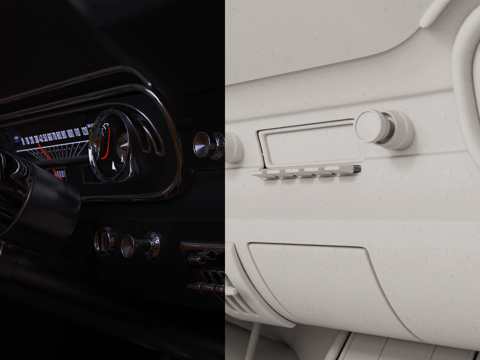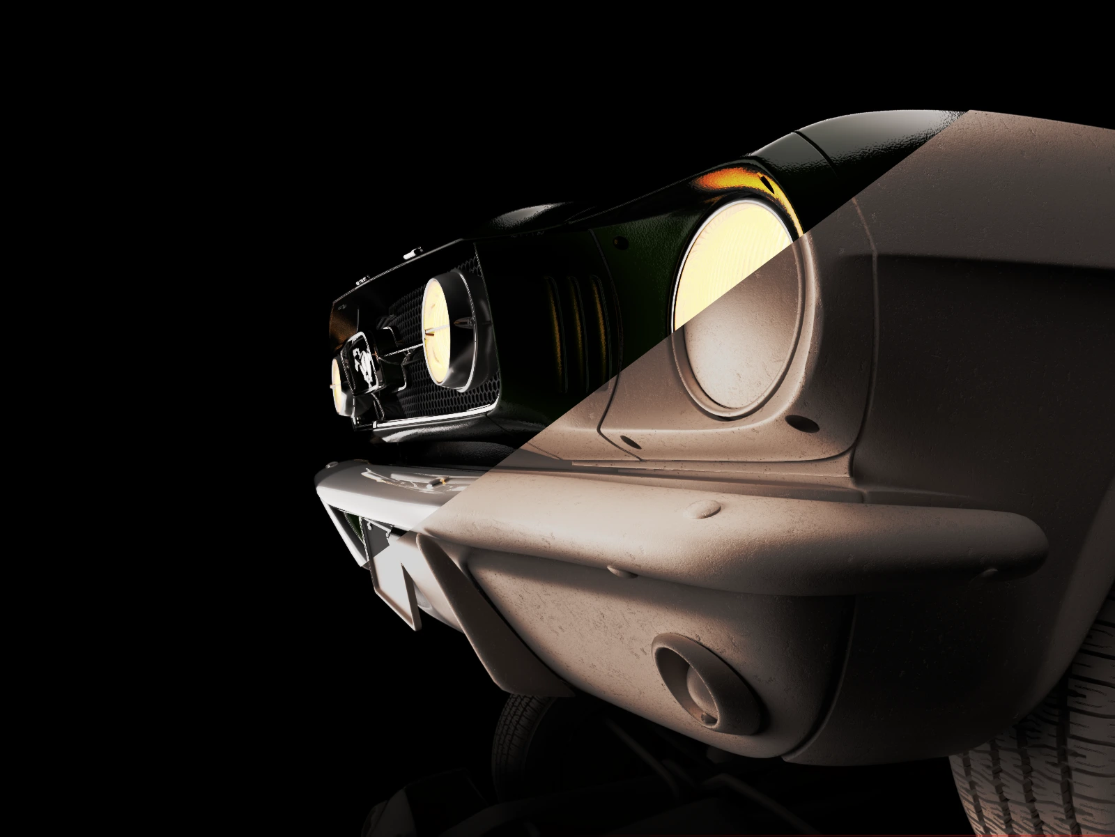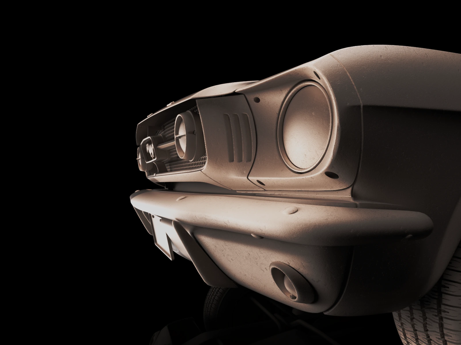 CGI visualization of the classic 1967 Ford Mustang Fastback, focusing on detail, materials, and automotive realism.