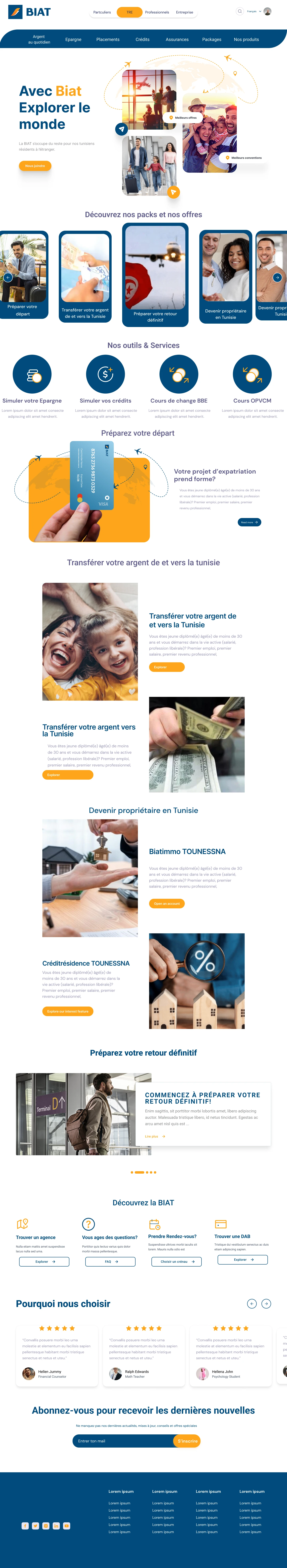 A UX redesign will focus on simplifying the layout, enhancing visuals, and introducing better navigation and filtering capabilities. By creating a more intuitive, clean, and visually appealing interface, users will be able to easily explore and access BIAT’s offerings. The updated design will enhance user satisfaction, improve product discoverability, and ultimately strengthen the connection between BIAT and its users, making banking more seamless and engaging.