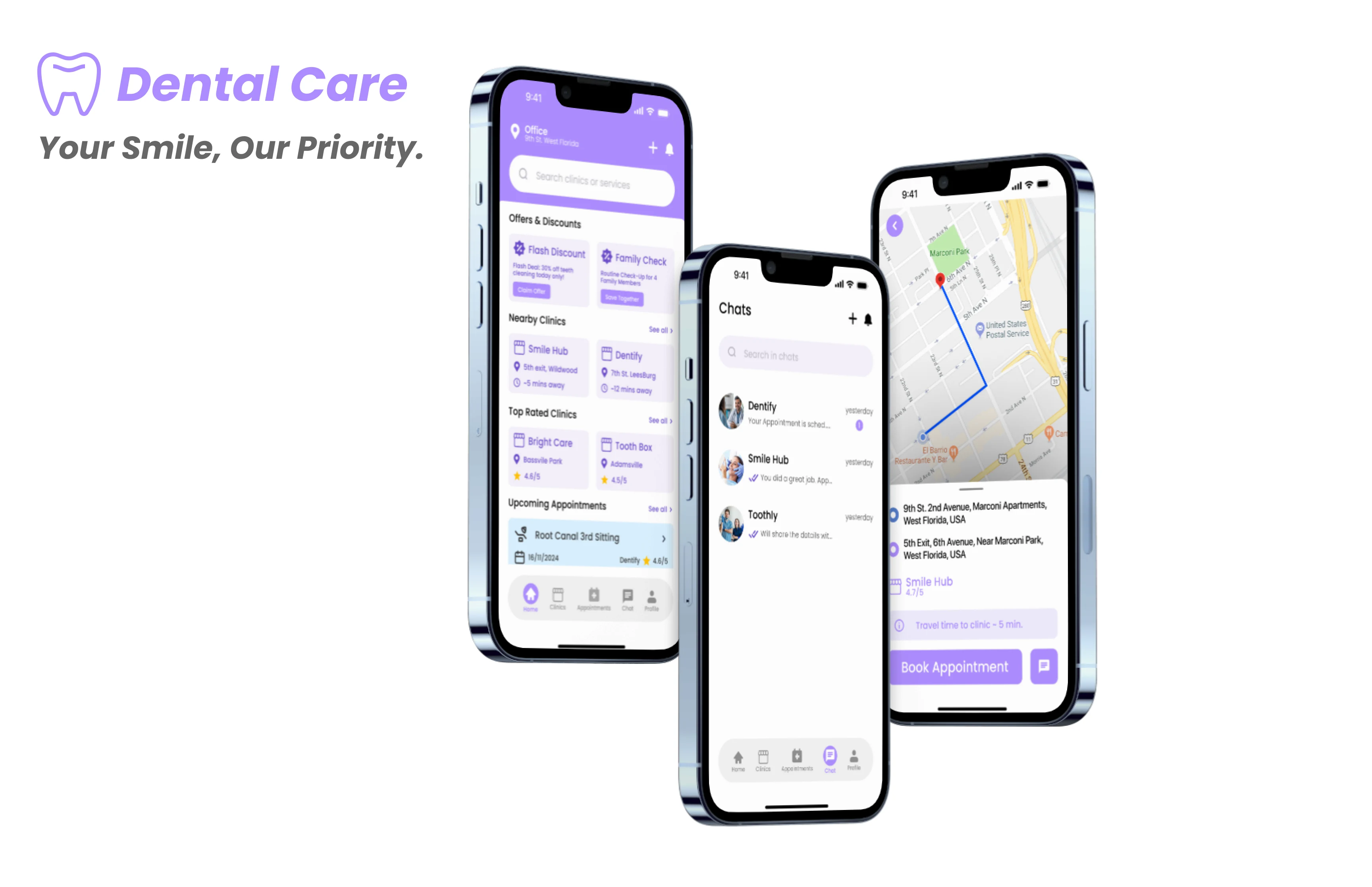Dental Care connects you with nearby dental clinics, making it easy to book appointments, chat with clinics, and access exclusive oral health offers.