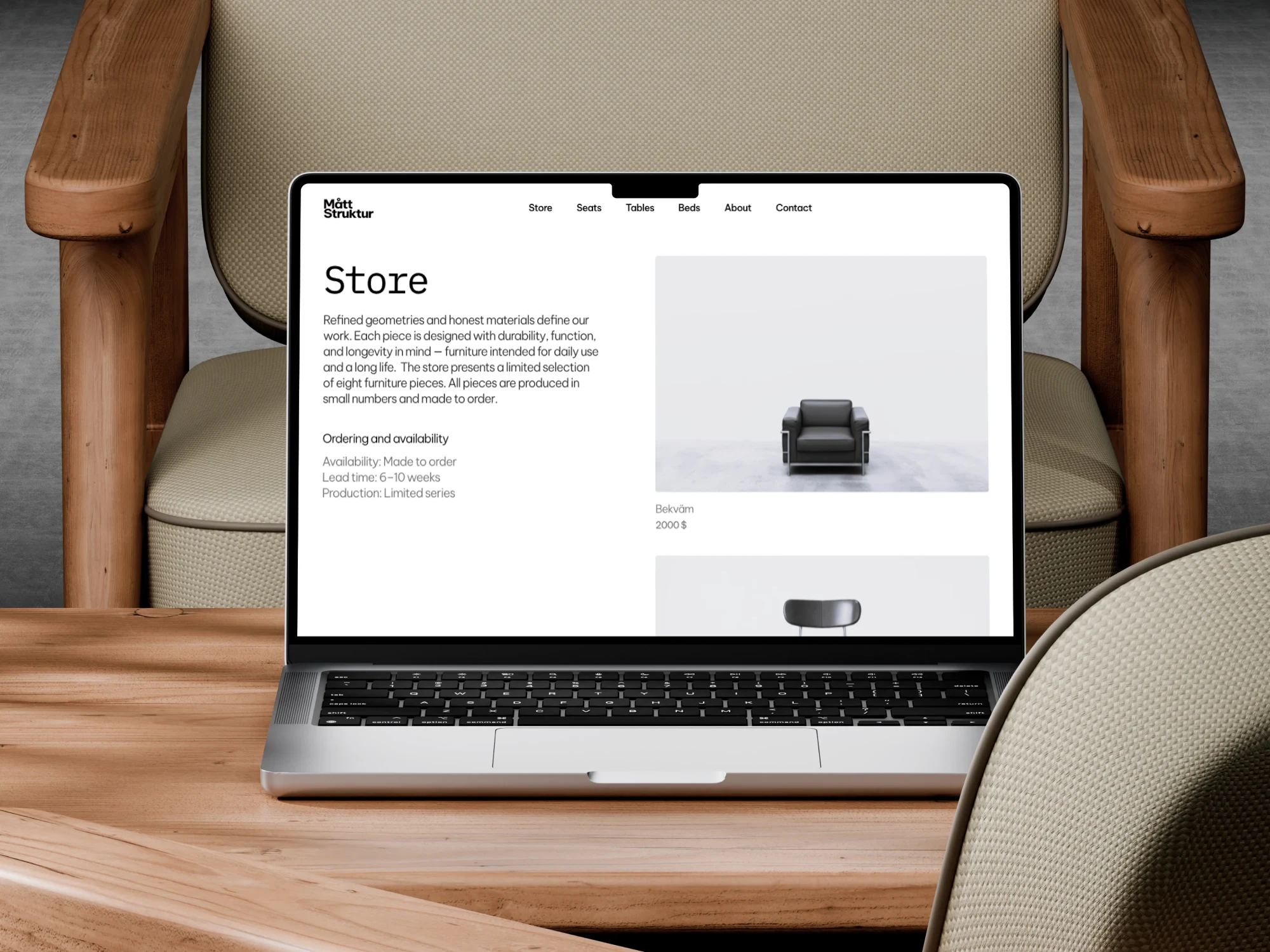 I designed and built a minimal, high-end furniture website for a boutique brand focused on bespoke and limited furniture pieces. The objective was to create a visually dominant experience with large photography and strong whitespace, while keeping conversion paths clear and usable. The brand offers only 6 products across 3 categories: seats, beds, chairs.