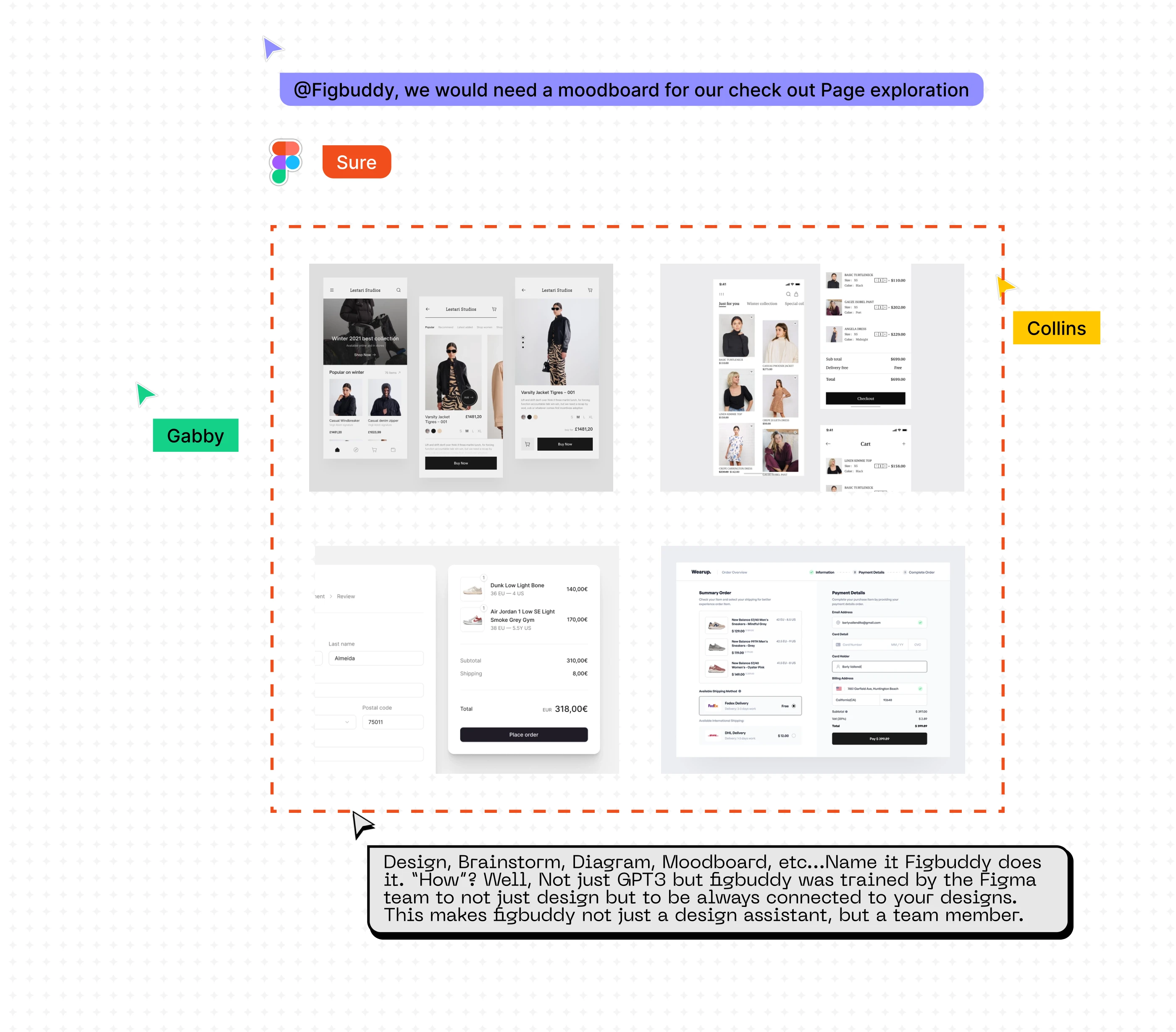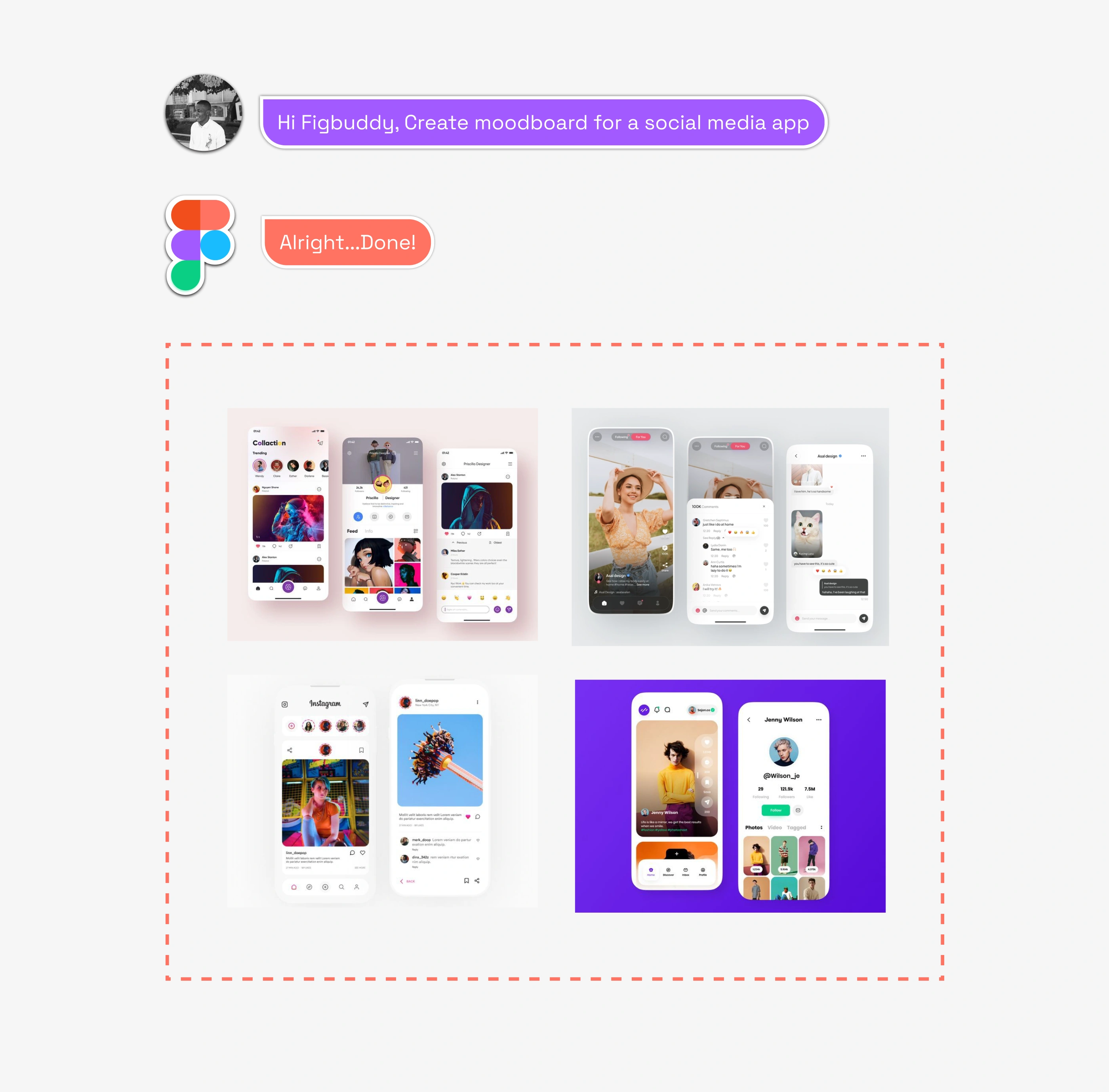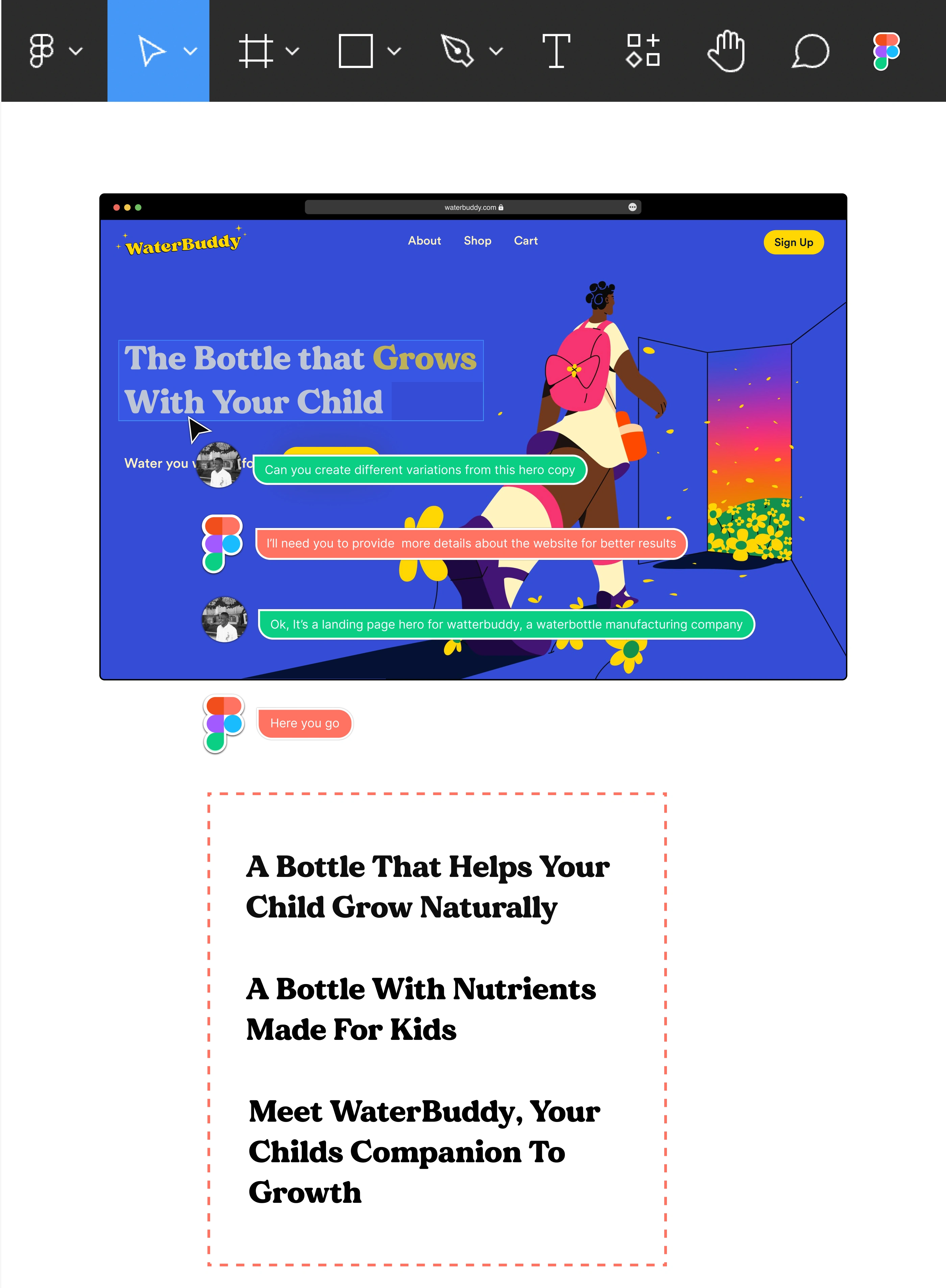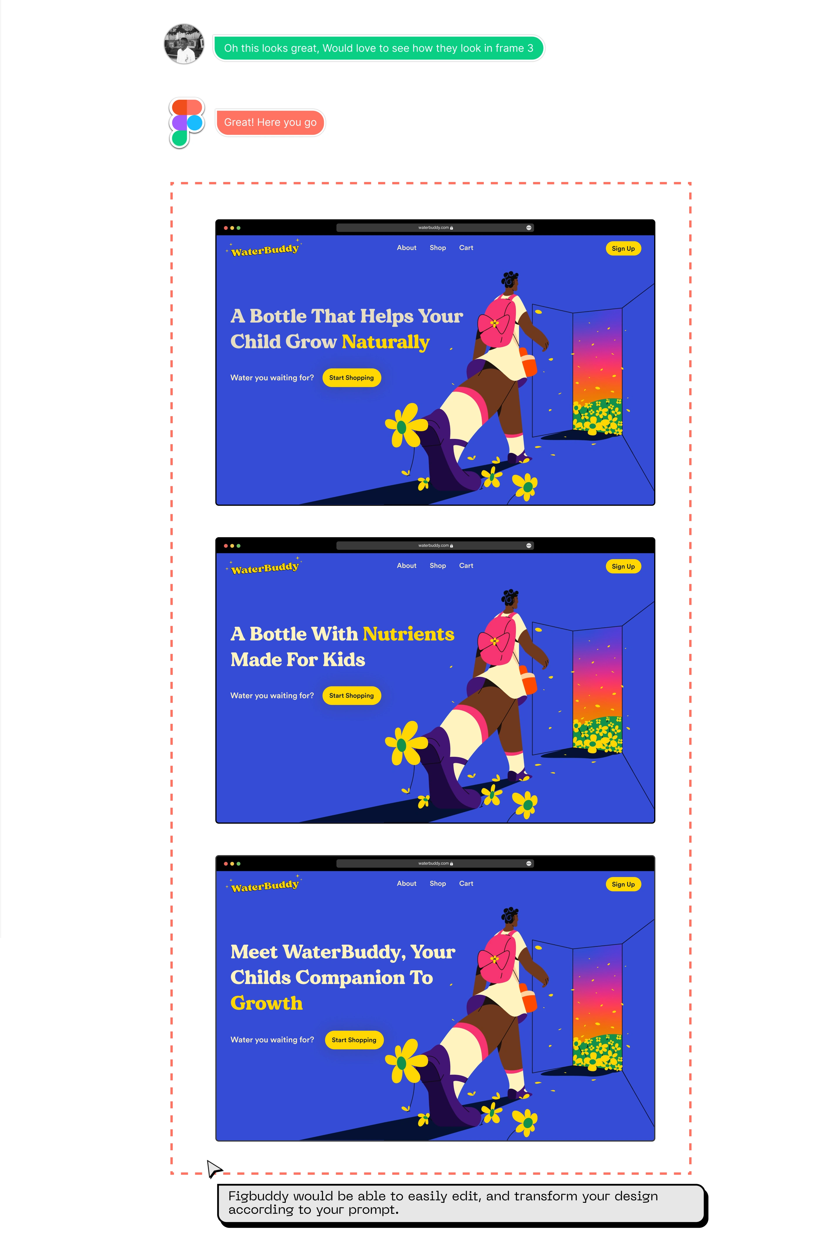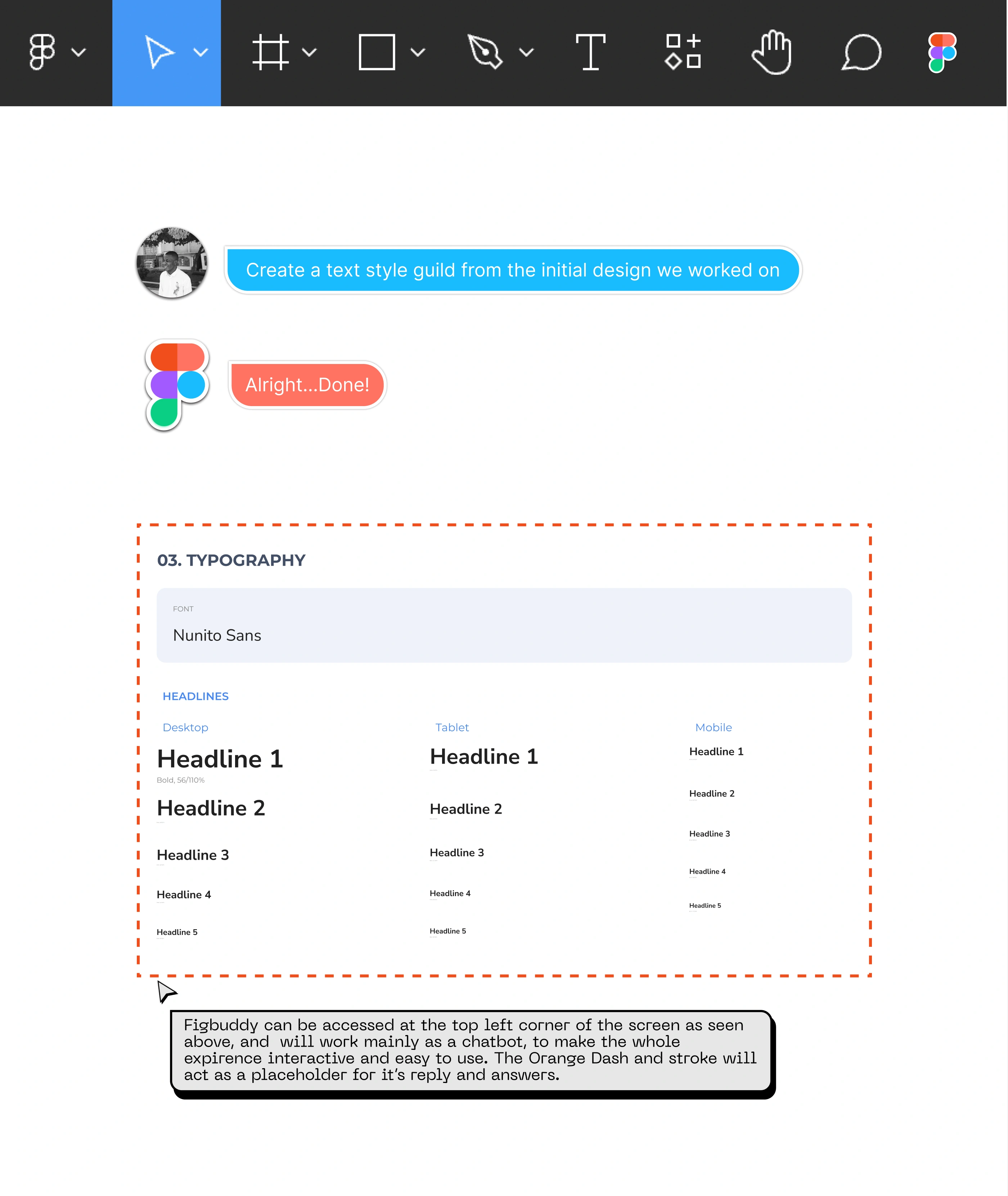 Figbuddy is a 2022 speculative concept exploring an AI assistant inside Figma inspired by VS Code Copilot and designed before ChatGPT went mainstream.