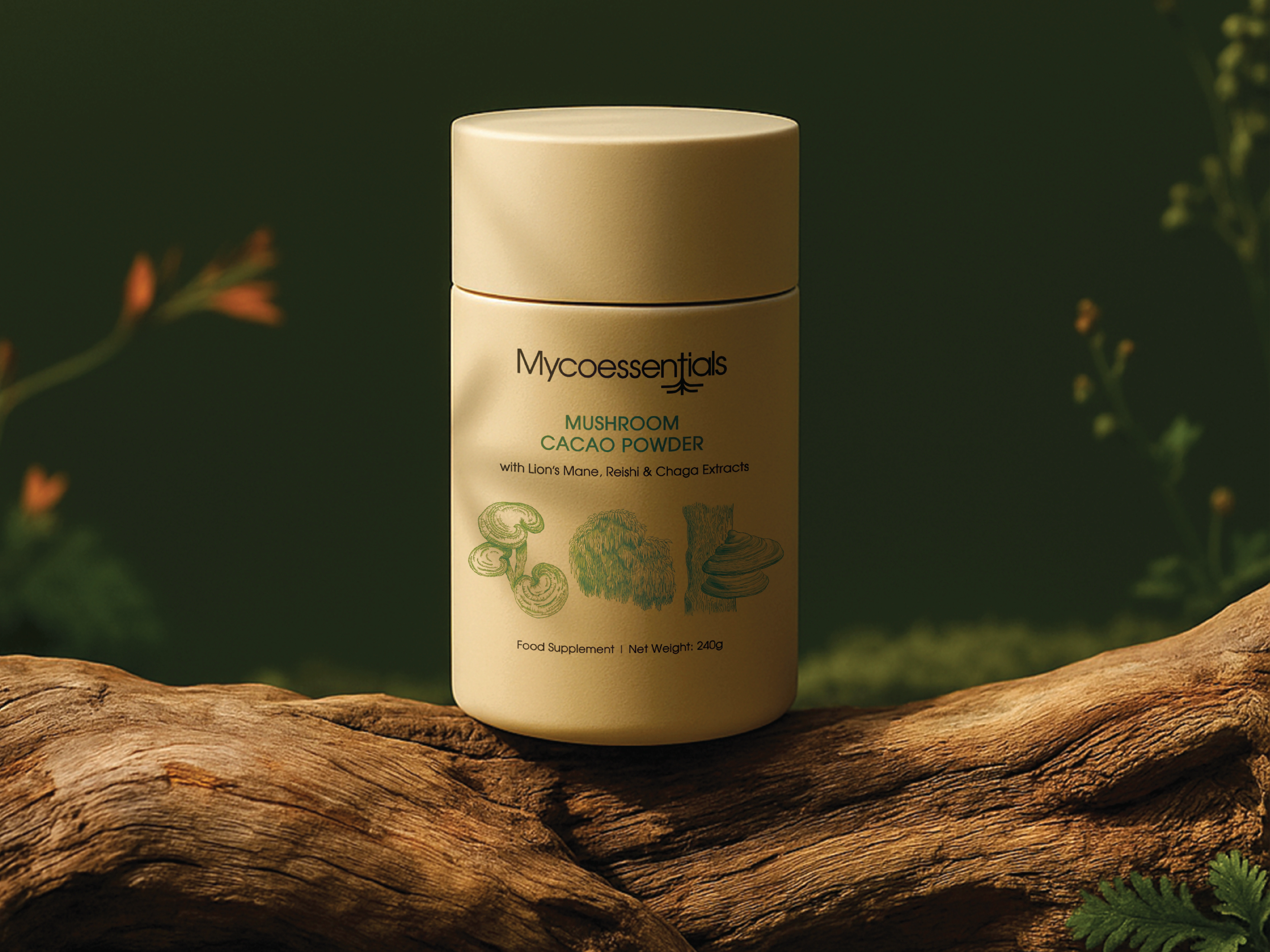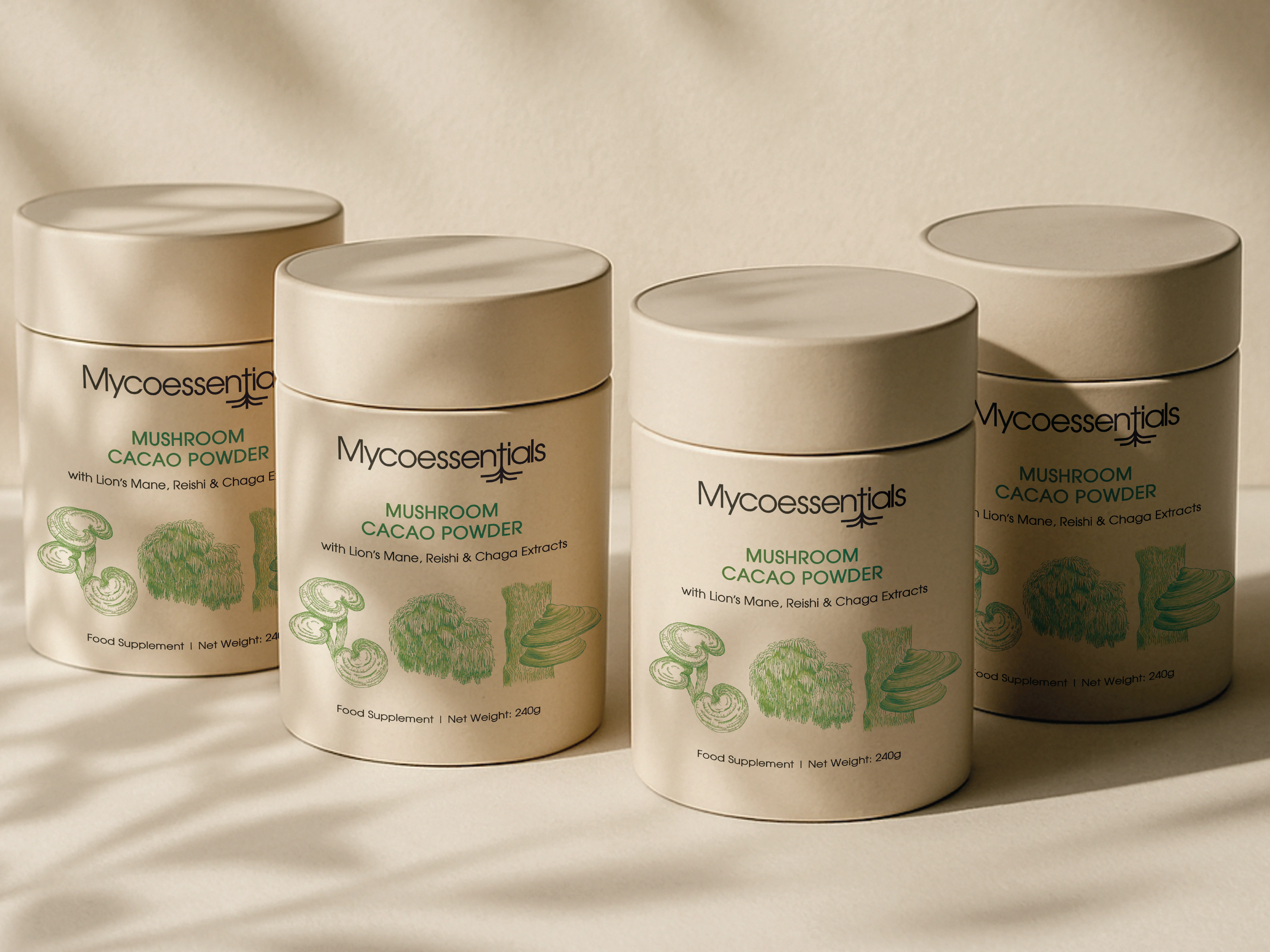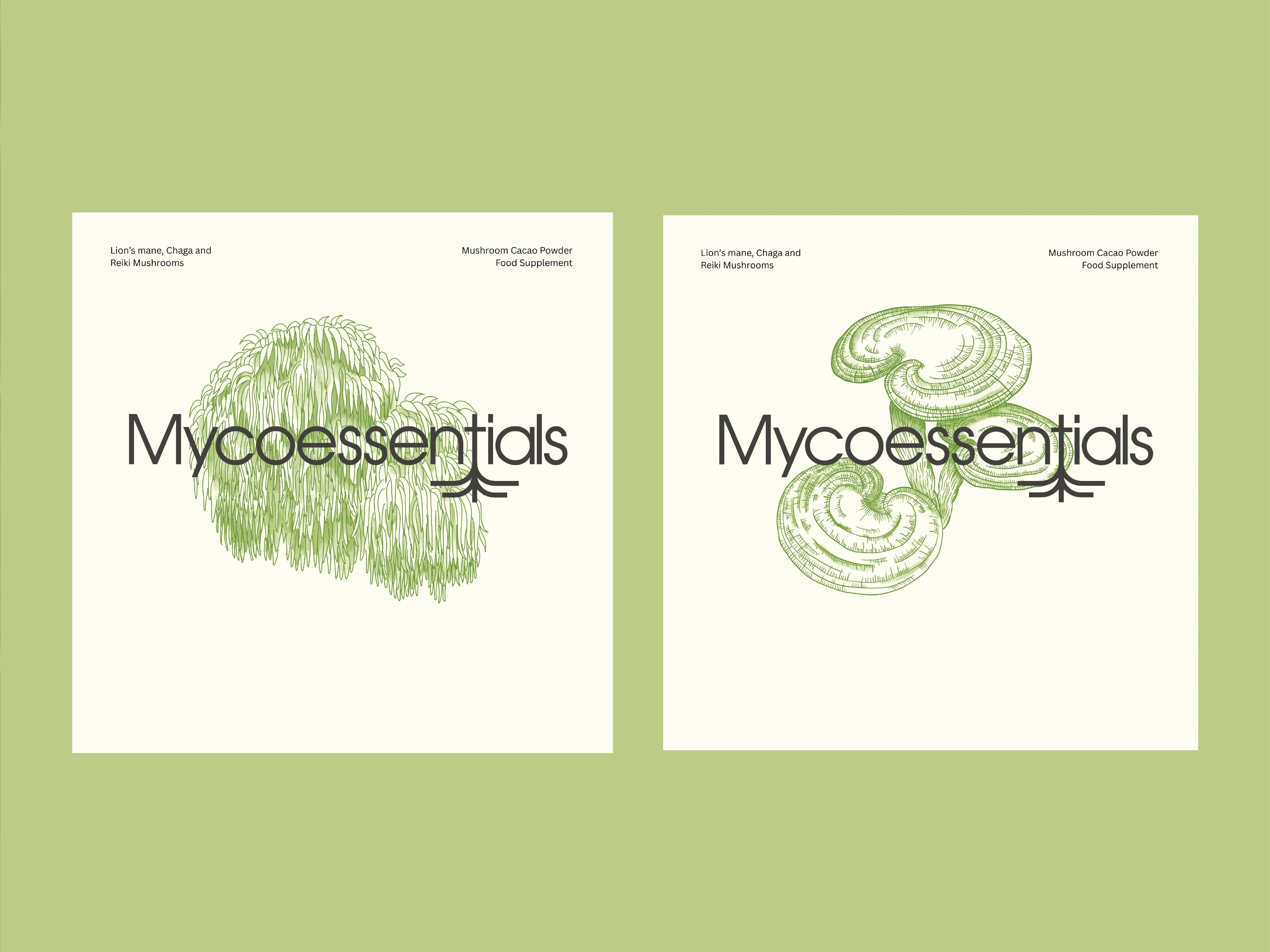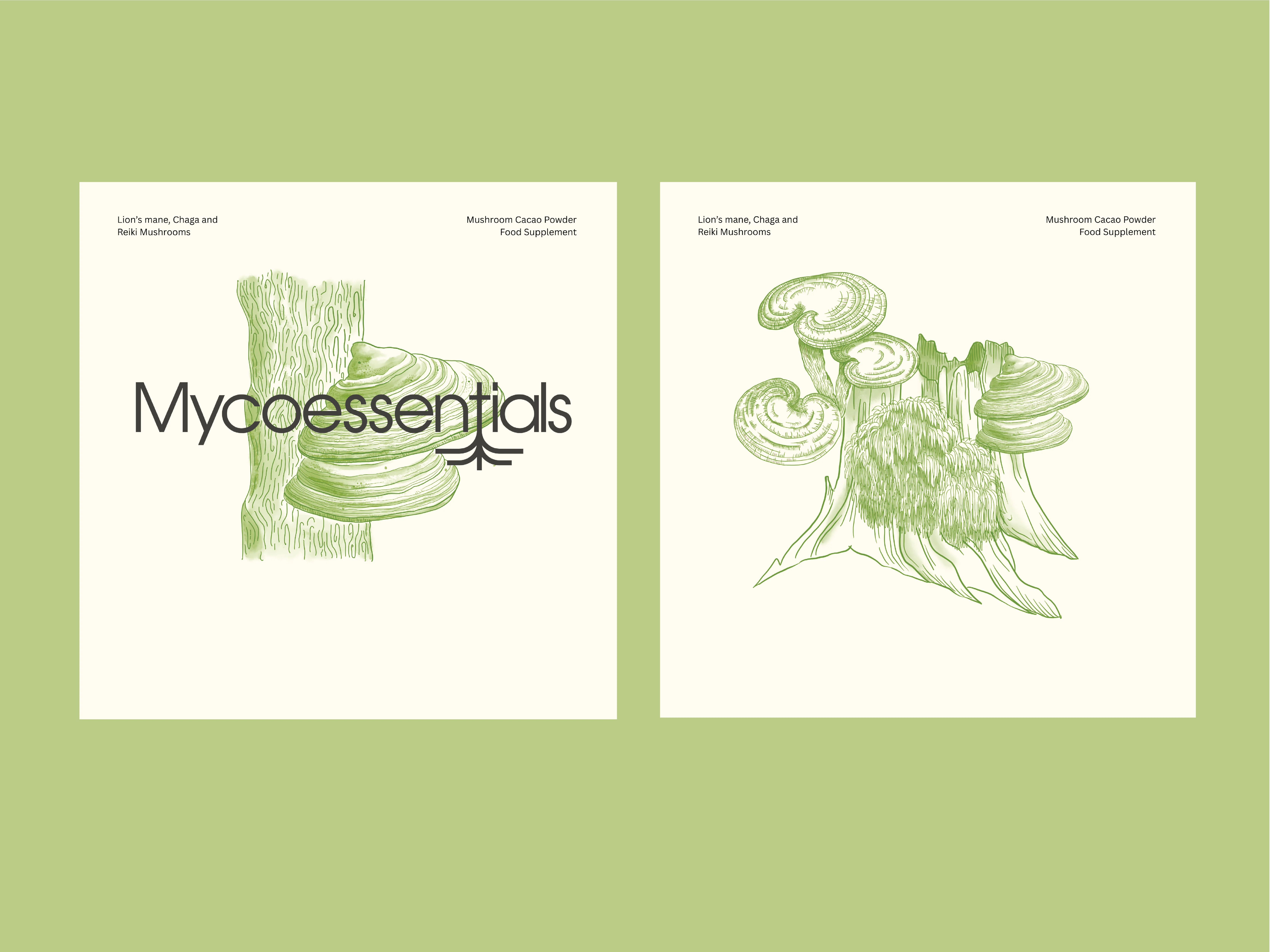 I built the entire visual identity for their mushroom cacao line - custom illustrations, packaging design, the works. The challenge was creating something that communicated the science and research behind the product while still feeling warm and approachable. The custom illustrations were key, each mushroom (Lion's Mane, Reishi, Chaga) got its own visual treatment that connects the natural ingredient to its function.