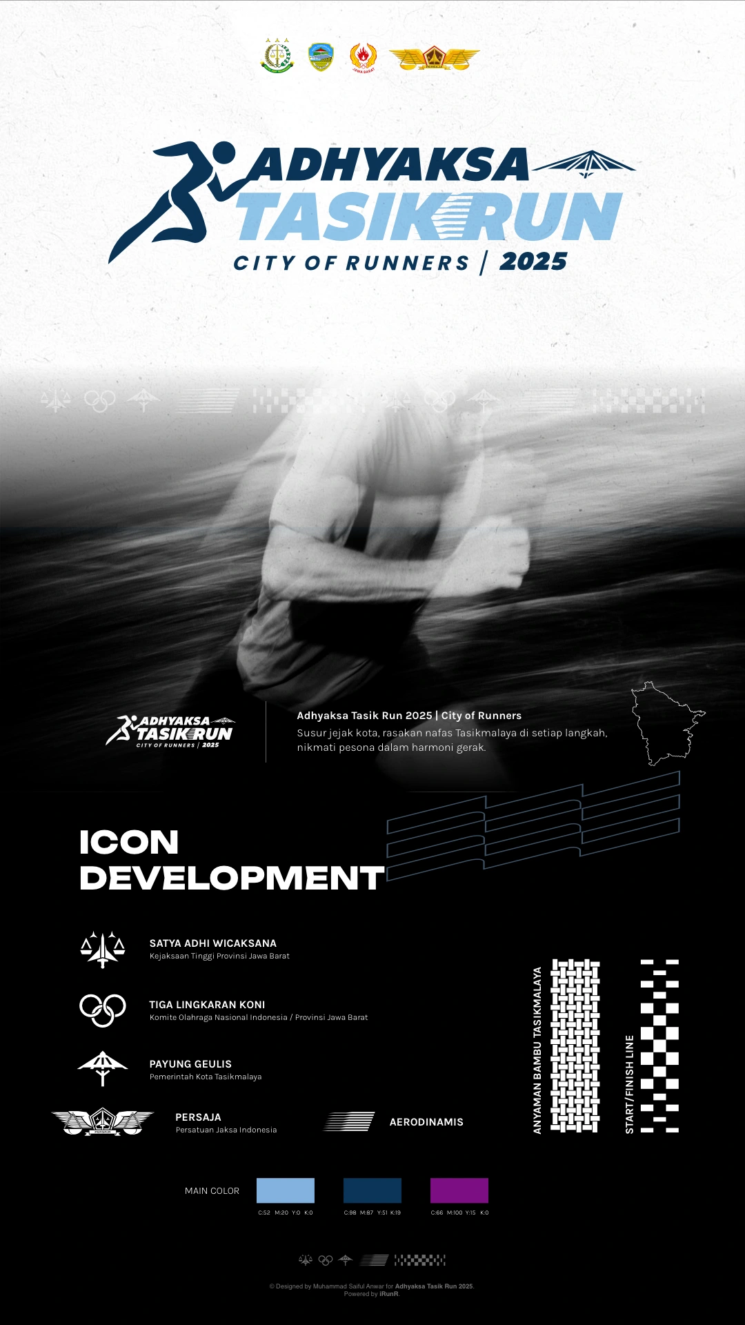 Running Event Logo for Adhyaksa Tasik Run 2025, combining dynamic shapes and bold colors to capture the spirit, energy, and excitement of the race.