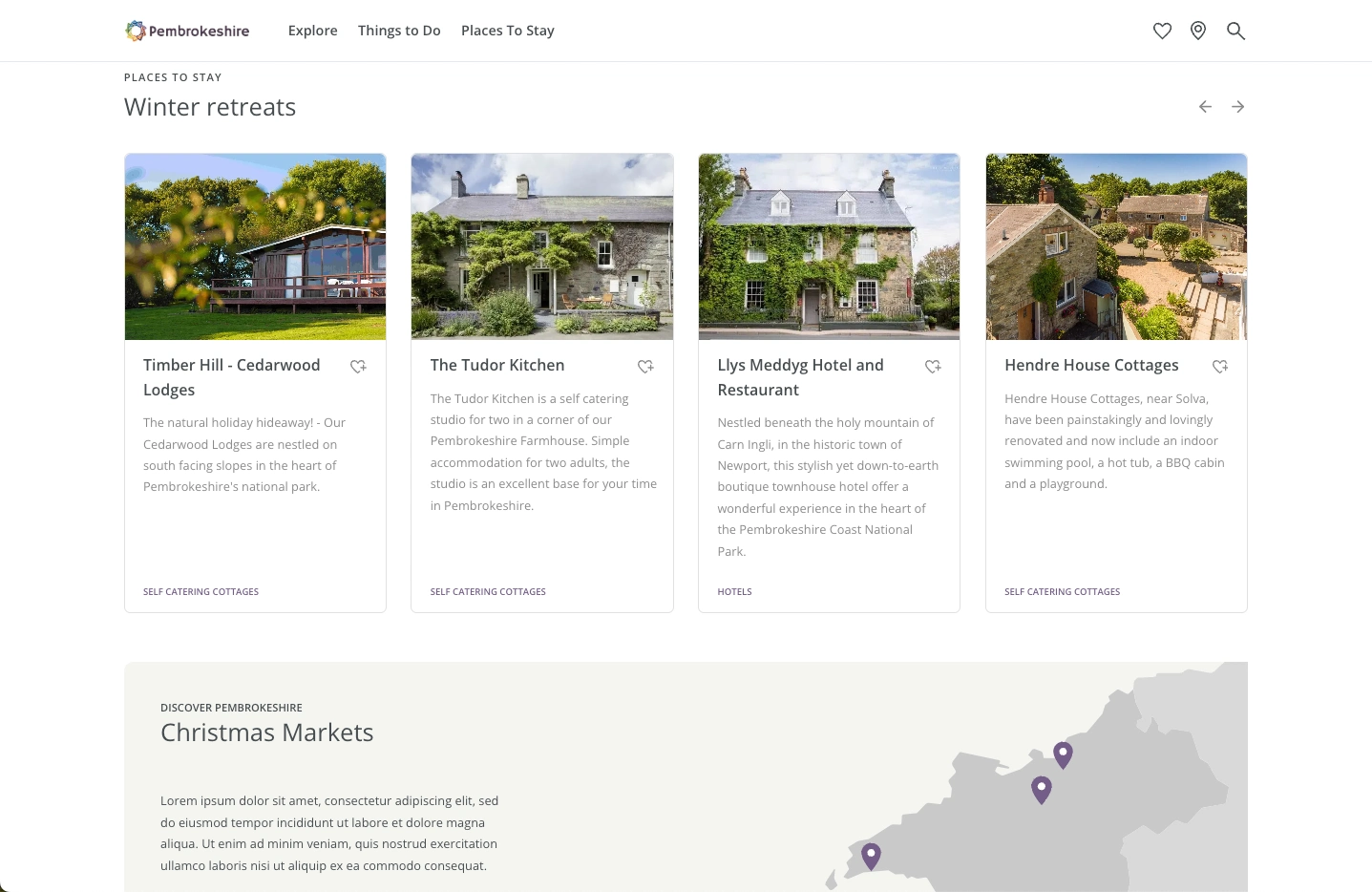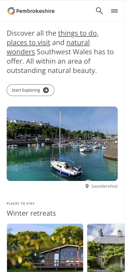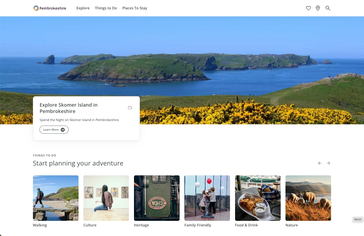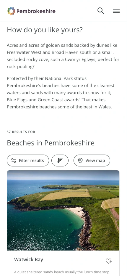 Contributed to the end-to-end design and development of a vibrant, accessible tourism portal for Visit Pembrokeshire, the official destination website for Pembrokeshire, Wales. Collaborating closely with designers in Figma, I helped translate the region’s coastal brand identity into a dynamic, mobile-first UX that invites exploration of beaches, trails, activities and local stories.