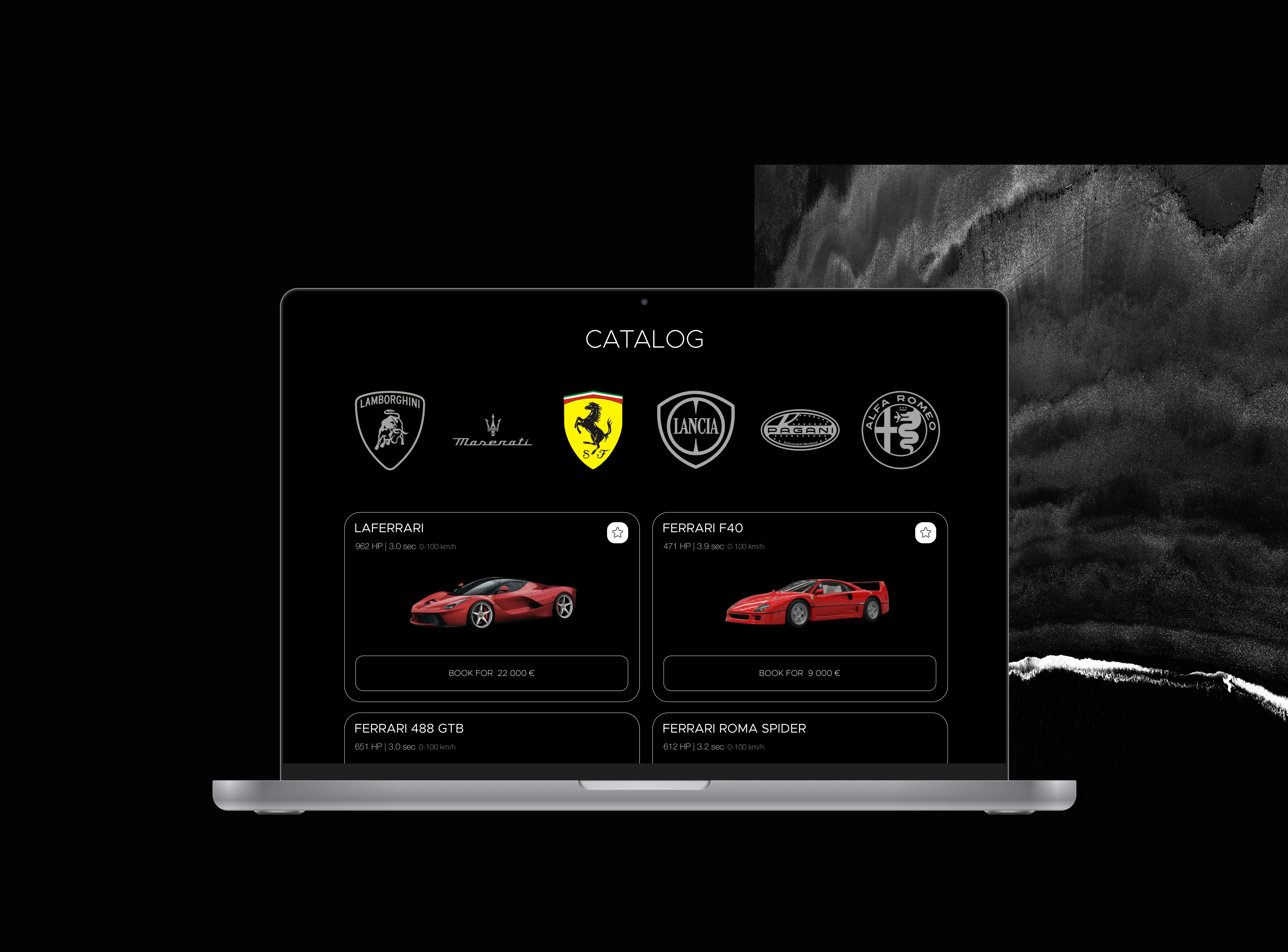 A UI concept for luxury car rental. The UX focuses on a fast, seamless booking flow & creating an emotional connection to the supercars.
