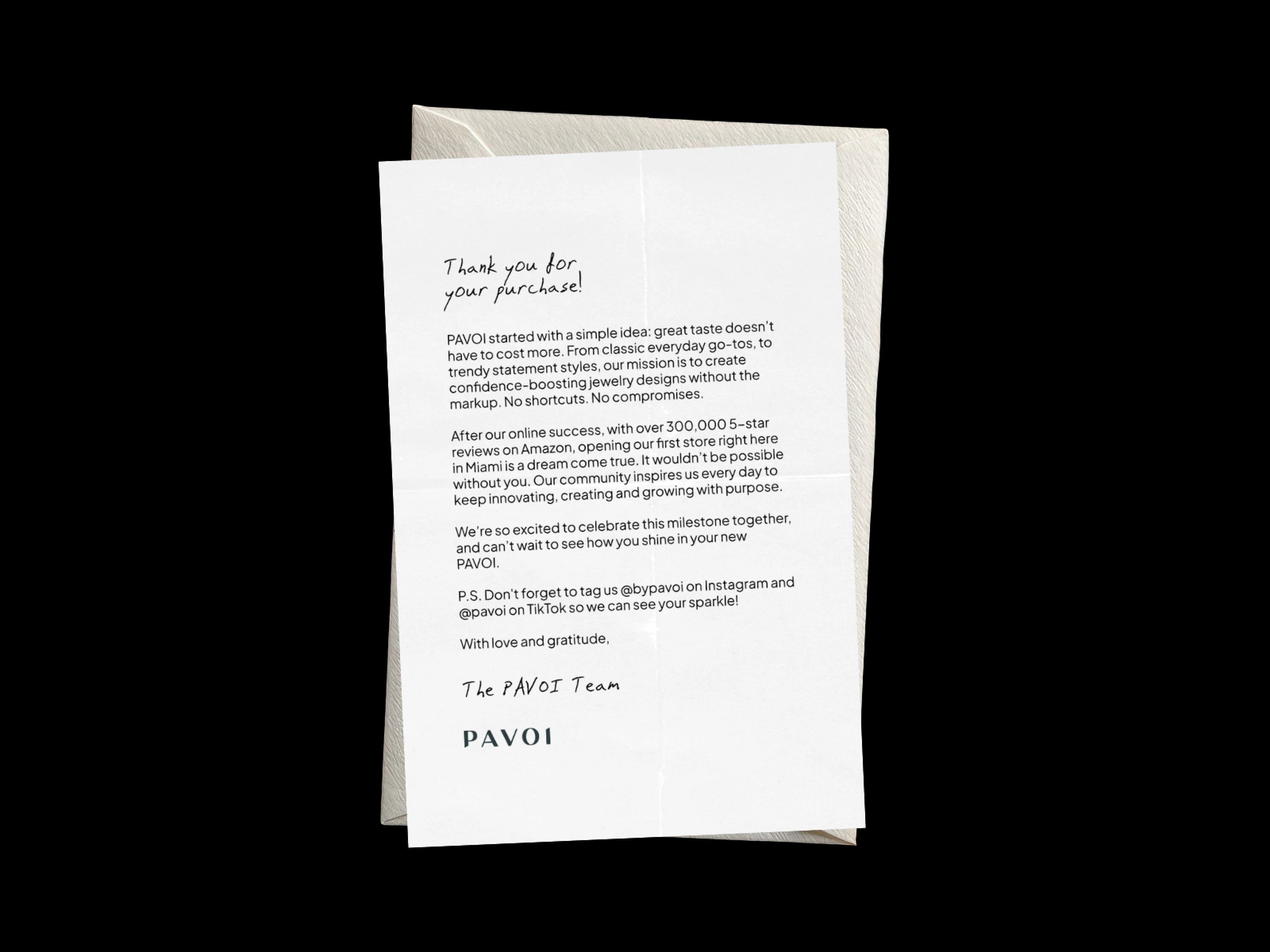 PAVOI opened a retail location at Dolphin Mall in Miami and needed a full suite of point-of-sale and merchandise assets to support the space. The scope included branded merchandise, in-store signage, promotional collateral, and packaging inserts. All assets were built to production-ready specification and prepared for print handoff.