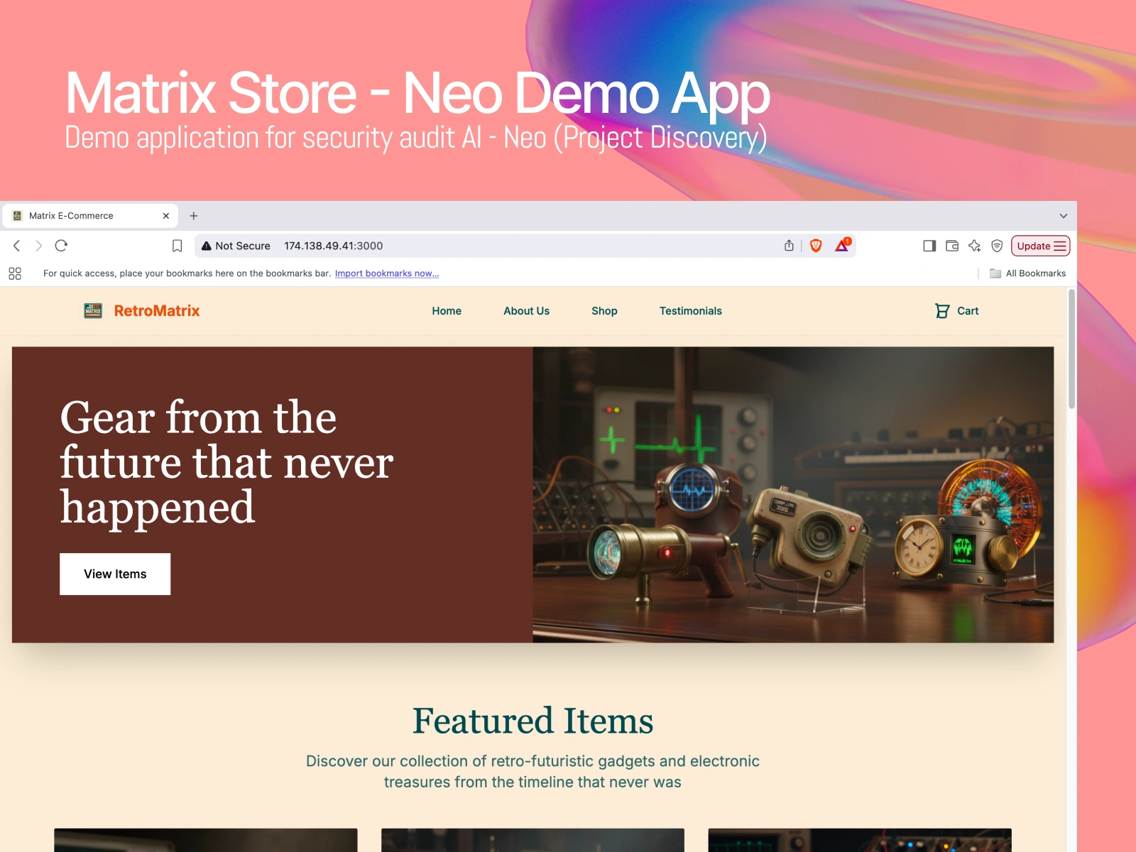 Purposely left a small number of vulnerabilities to evaluate Neo’s AI-based security engine.