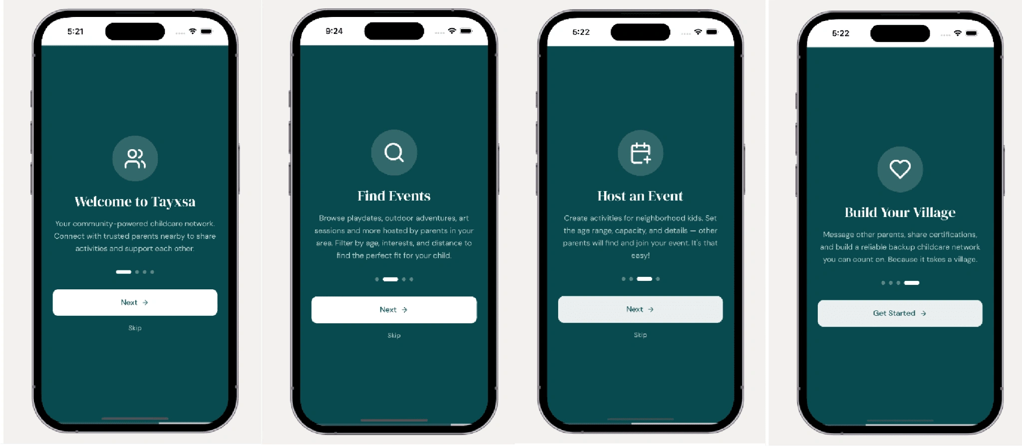 Tayxsa launched to a closed beta of 15 parents to validate trust signals, usability, and real-world hosting behavior.