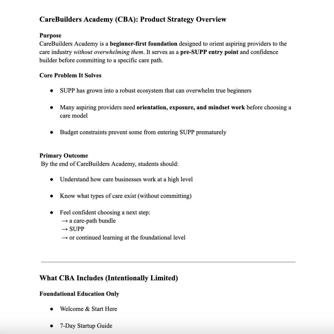 A strategic overview defining the purpose, scope, and boundaries of a new foundational education program. Built to clarify audience, outcomes, and intentional limitations — ensuring the offer supported early-stage users while protecting higher-tier programs within a multi-offer ecosystem.