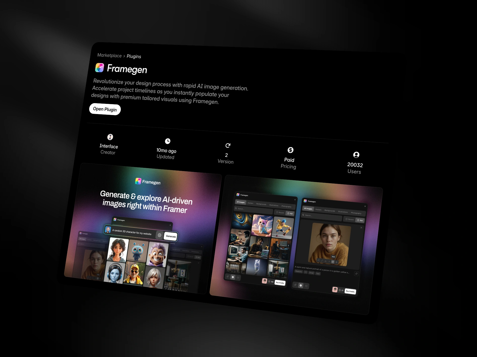 Framegen quickly became one of the top plugins on the Framer Marketplace, and at the time of this case study, had over 20k users.