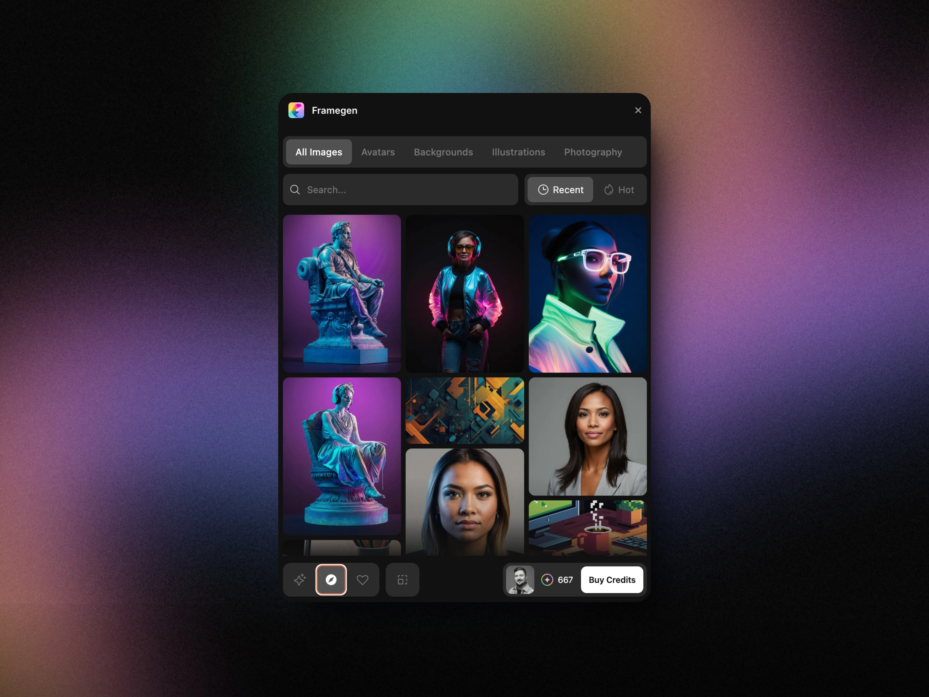 Framegen was more than image generation, it was a library of image collections that users could access without spending credits generating new images.