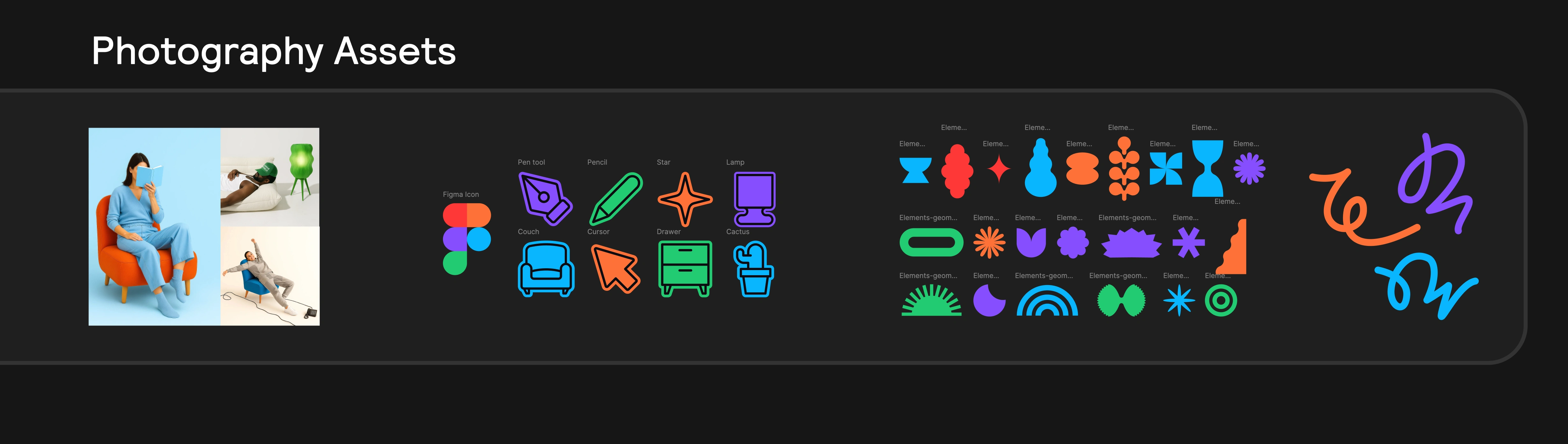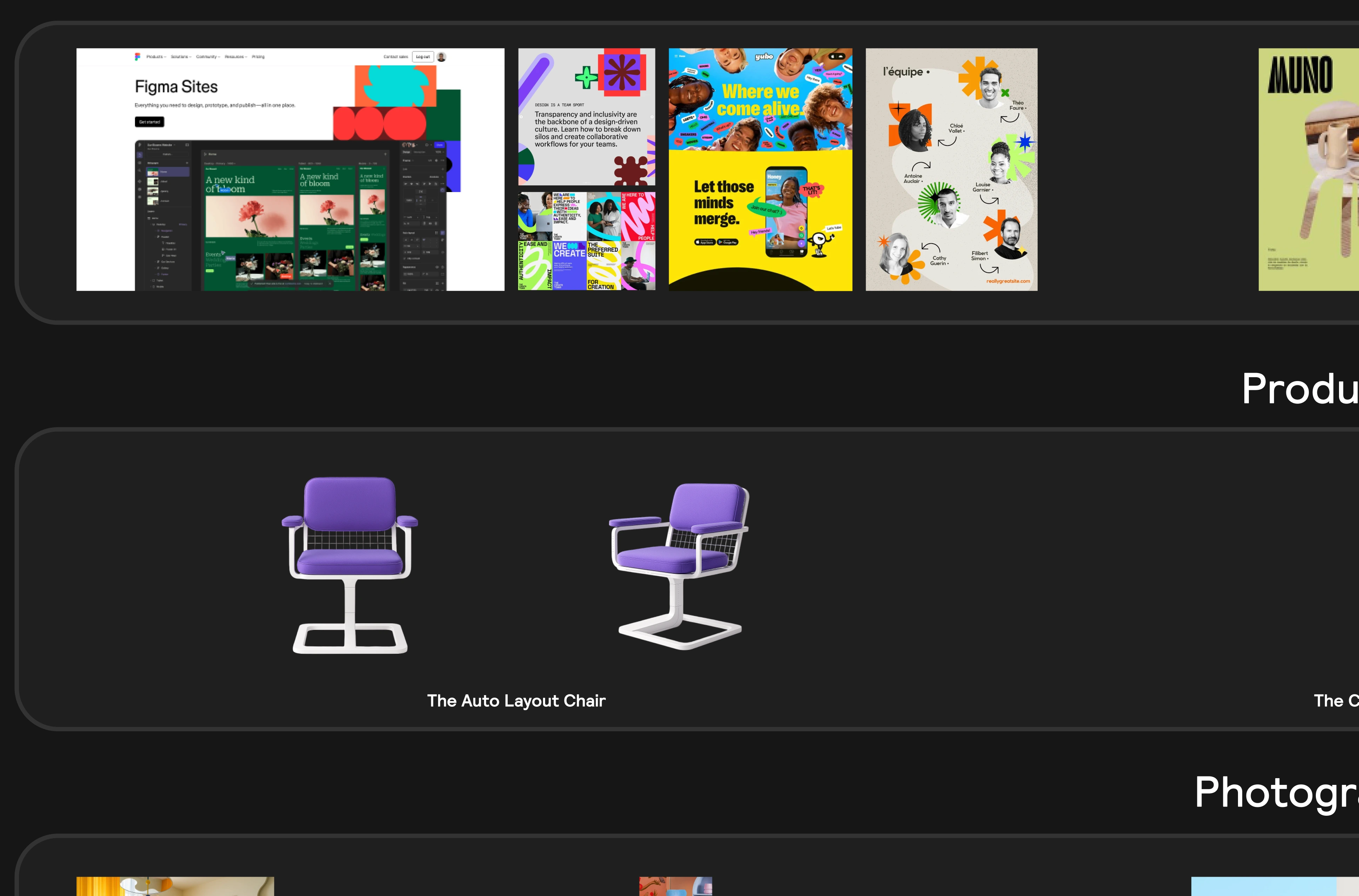 I improved the provided assets into a unified "Figma Furniture" brand universe where UI design meets interior design. The concept treats Figma's interface tools — Auto Layout, Frames, Components — as literal physical products.