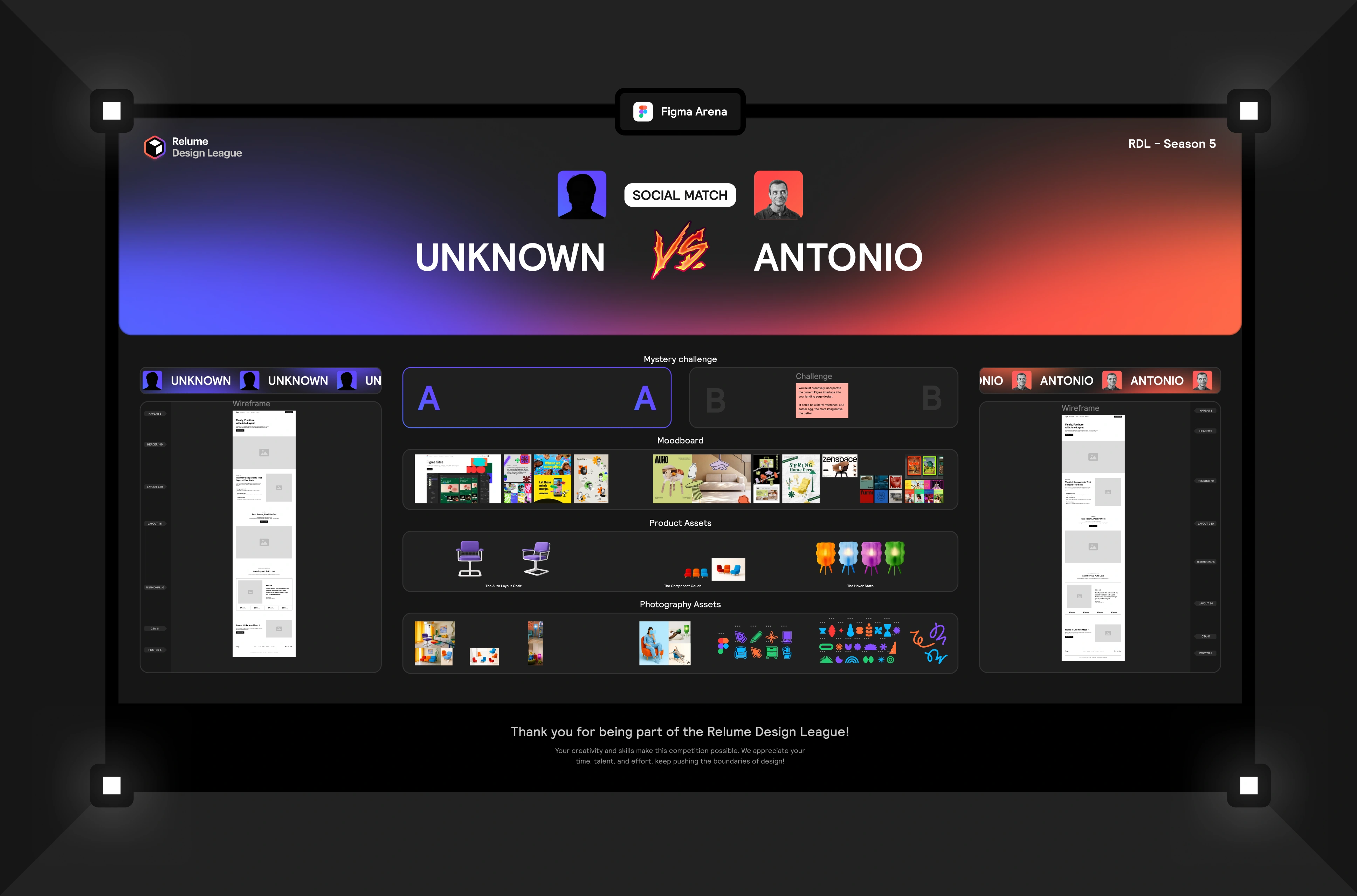A high-intensity design sprint for the Relume Design League, the "World's First Esports for Web Design." The challenge: create a compelling landing page in just 30 minutes, redesigning the "Figma as Furniture" concept from scratch.