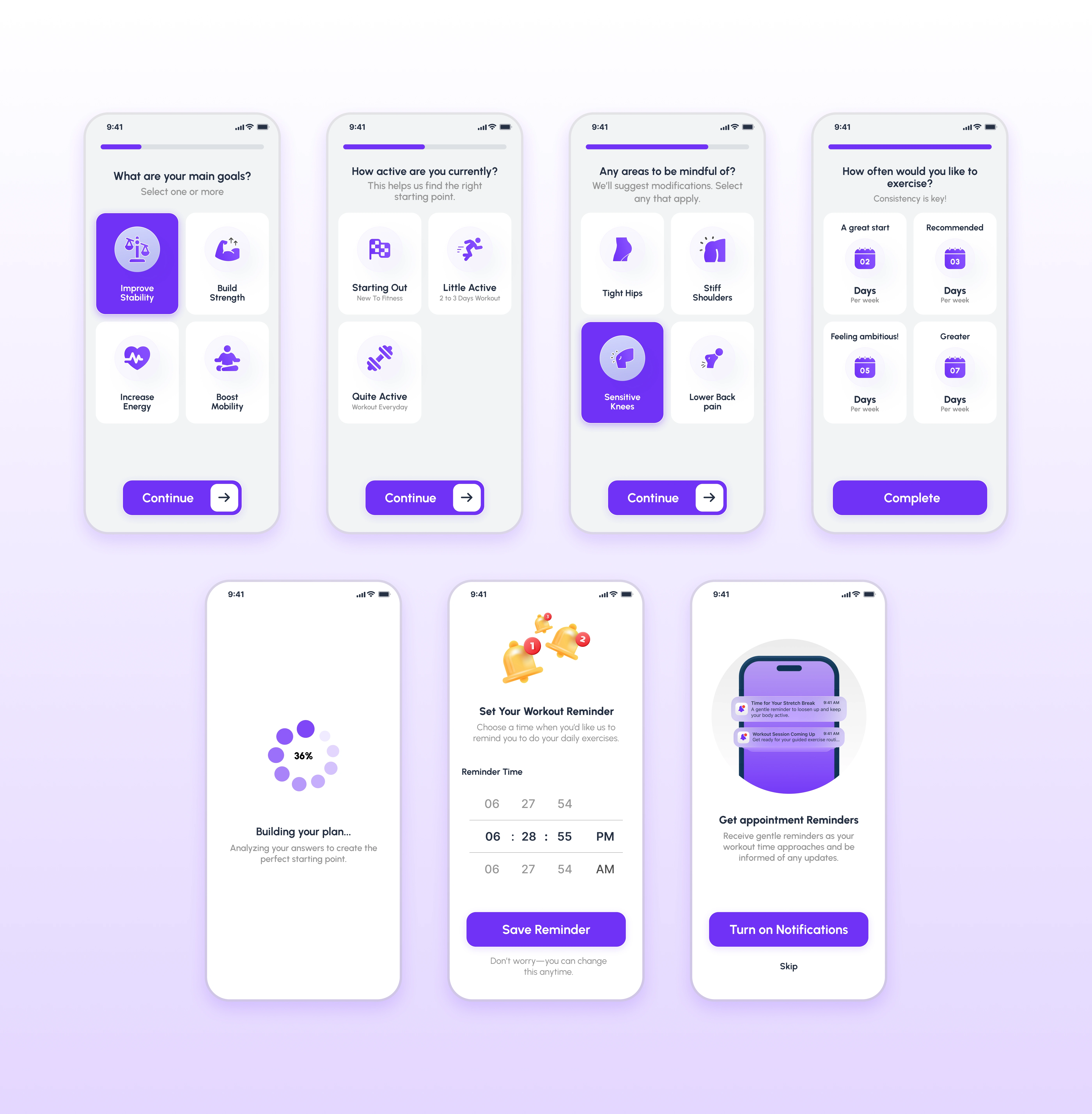 The onboarding flow was designed to feel simple, supportive, and non-intimidating.