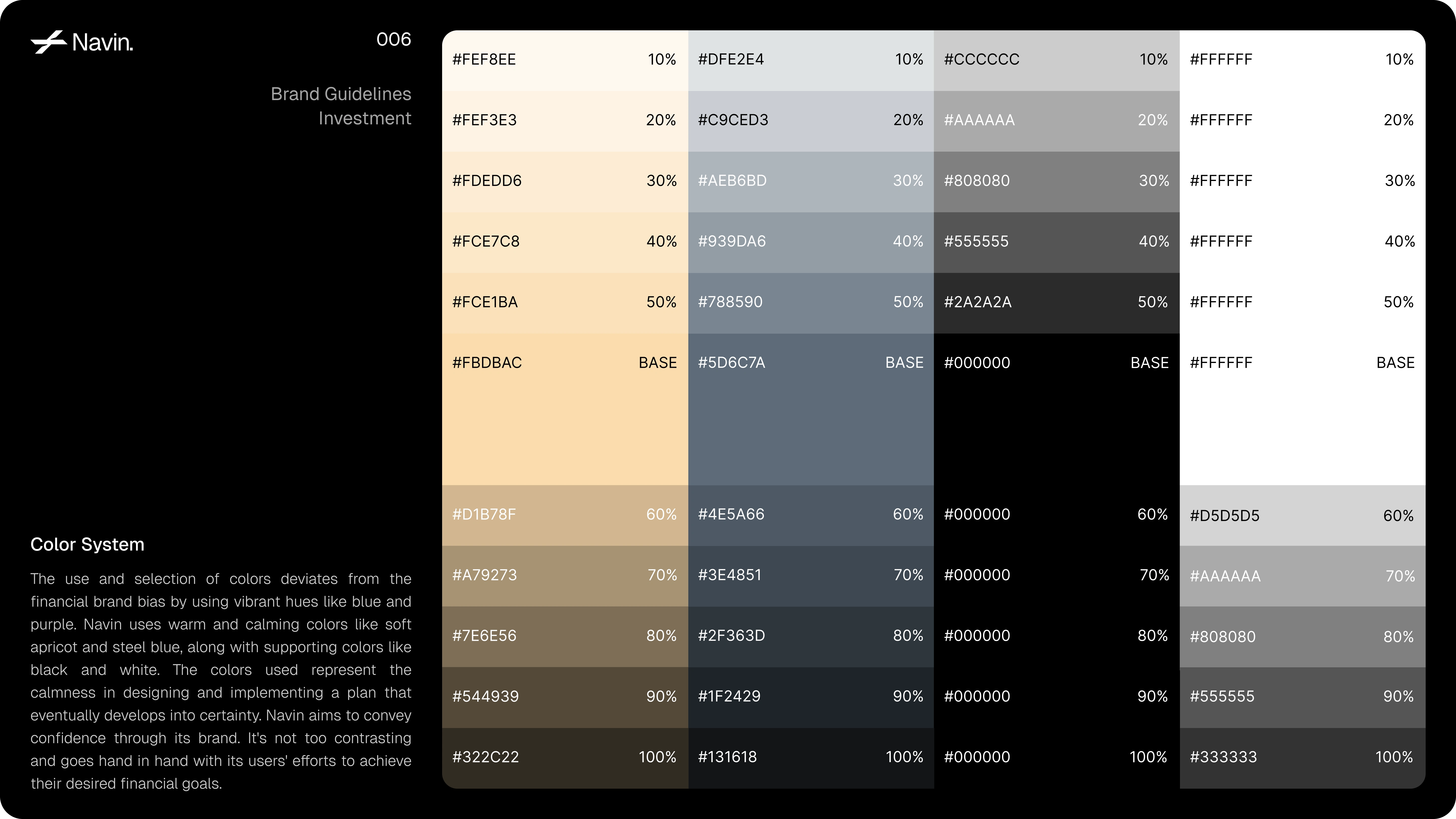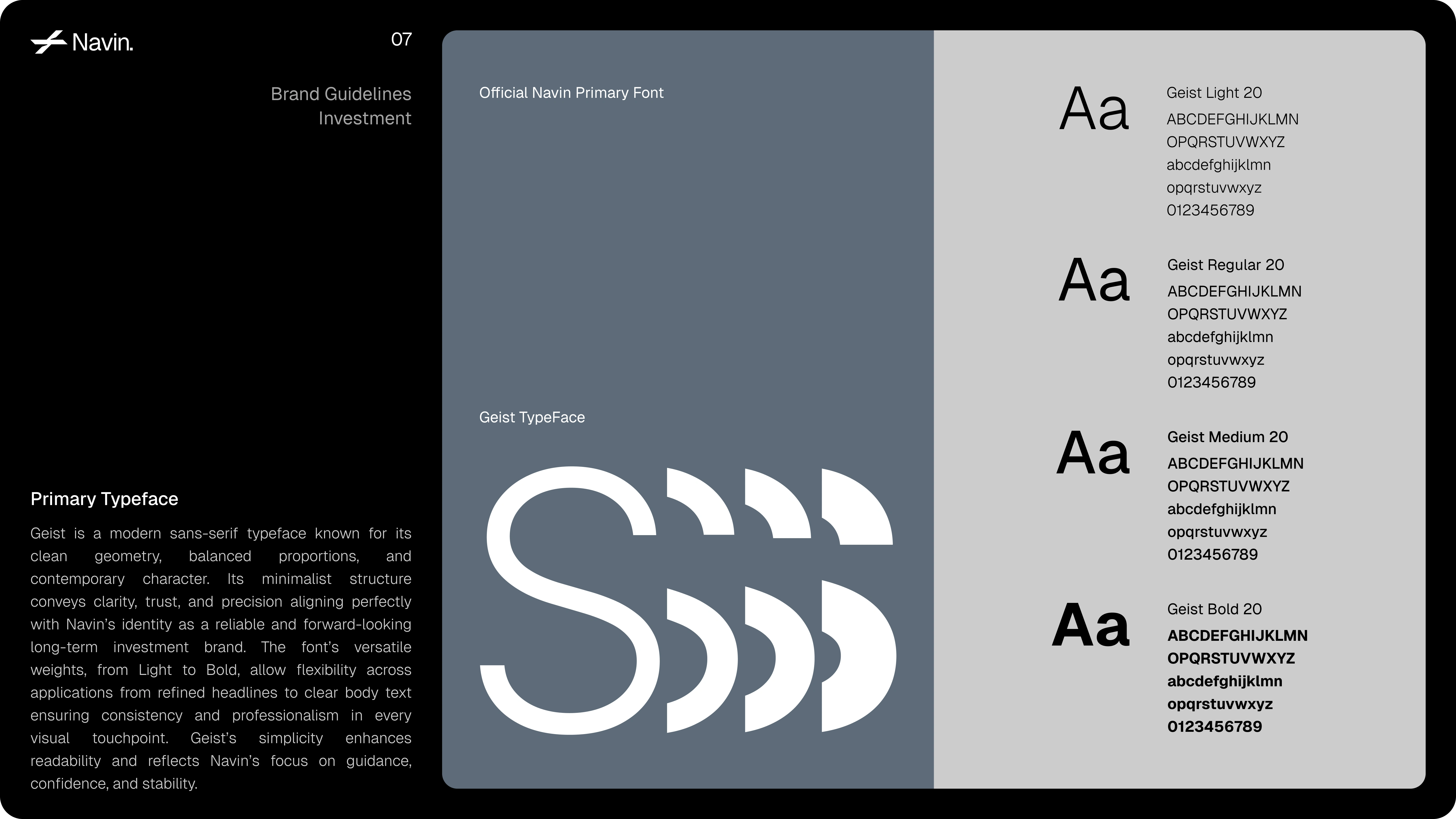 Our strategy centered on a highly unique Logo Design, adopting a stylized wrench icon. This bold choice immediately communicates Navin’s role as an empowering financial tool, signaling precision, repair, and the act of actively building wealth. This potent symbol is paired with a clean, confident sans-serif typeface, adhering to minimalist principles. The high-contrast visual system utilizes stark black and white for maximum clarity, providing a strong foundation for the detailed Brand Asset Management documented within the guidelines.