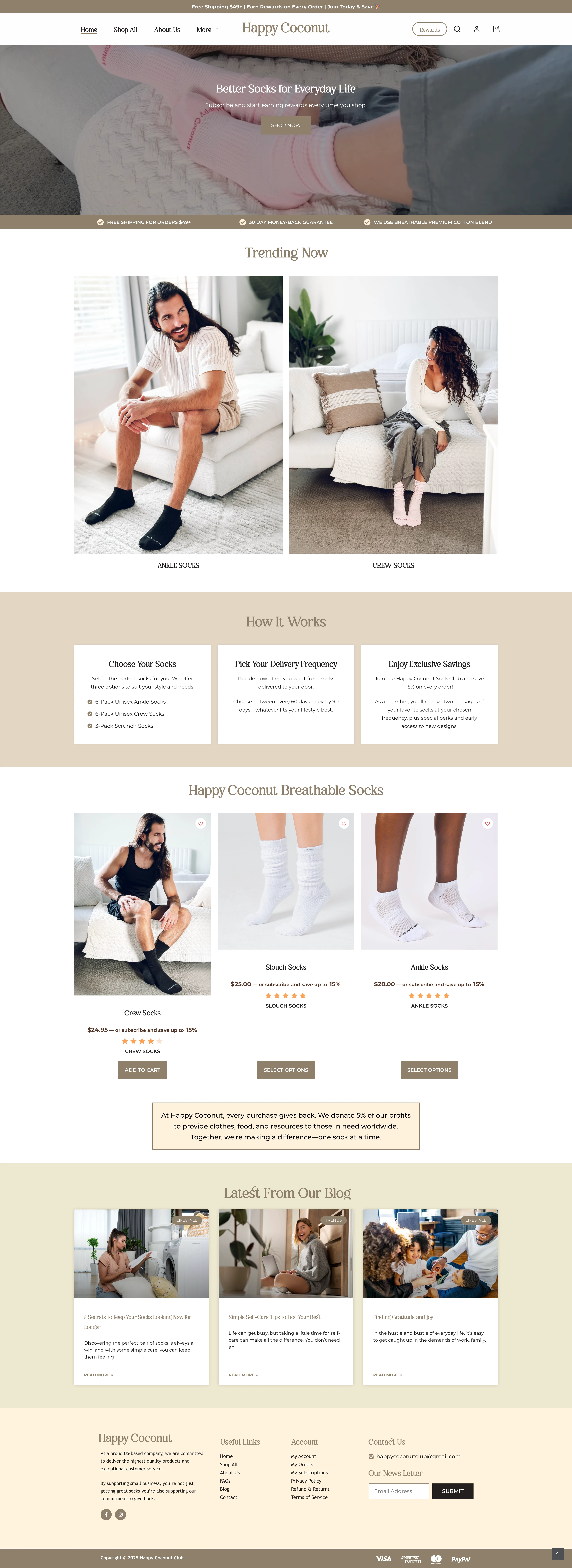 I crafted a clean, engaging e-commerce website for Happy Coconut Club that elevates the brand’s lifestyle identity and supports its subscription and reward-based system. Built on WordPress and designed using Elementor (with Yoast SEO optimization), the site showcases products clearly, enables shoppers easily, and supports community-driven brand values. The responsive, visually-rich design helps position Happy Coconut Club as a modern, meaningful online store with strong conversion and brand engagement potential.