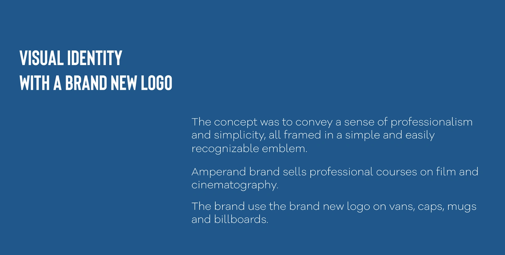 For this project, I was tasked with designing a fresh visual identity and logo for Amperand, a brand that offers professional courses in film and cinematography