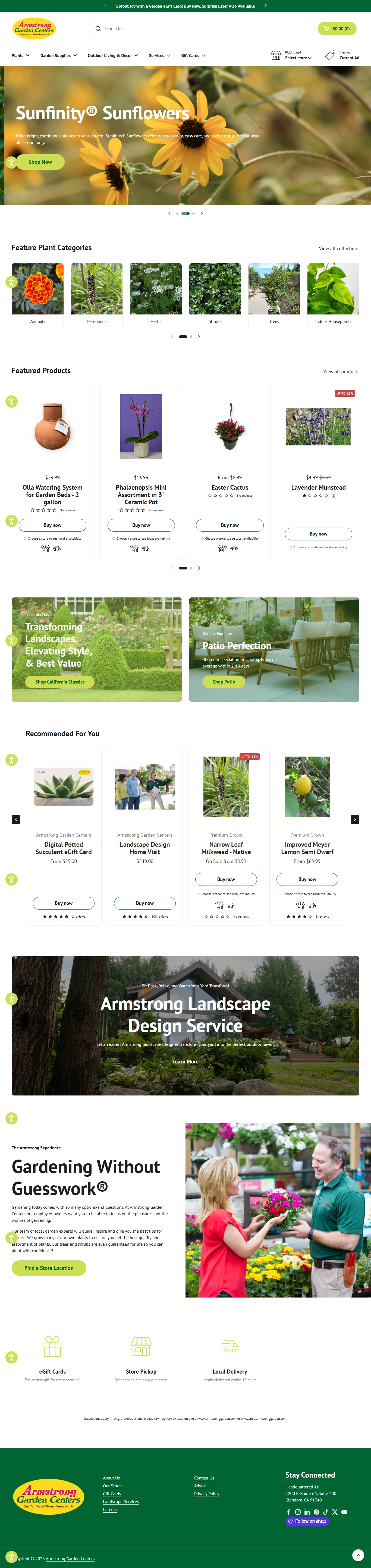 Redesigned Armstrong Garden's website for better user experience, showcasing plants, services, and promotions with a clean, mobile-friendly layout.