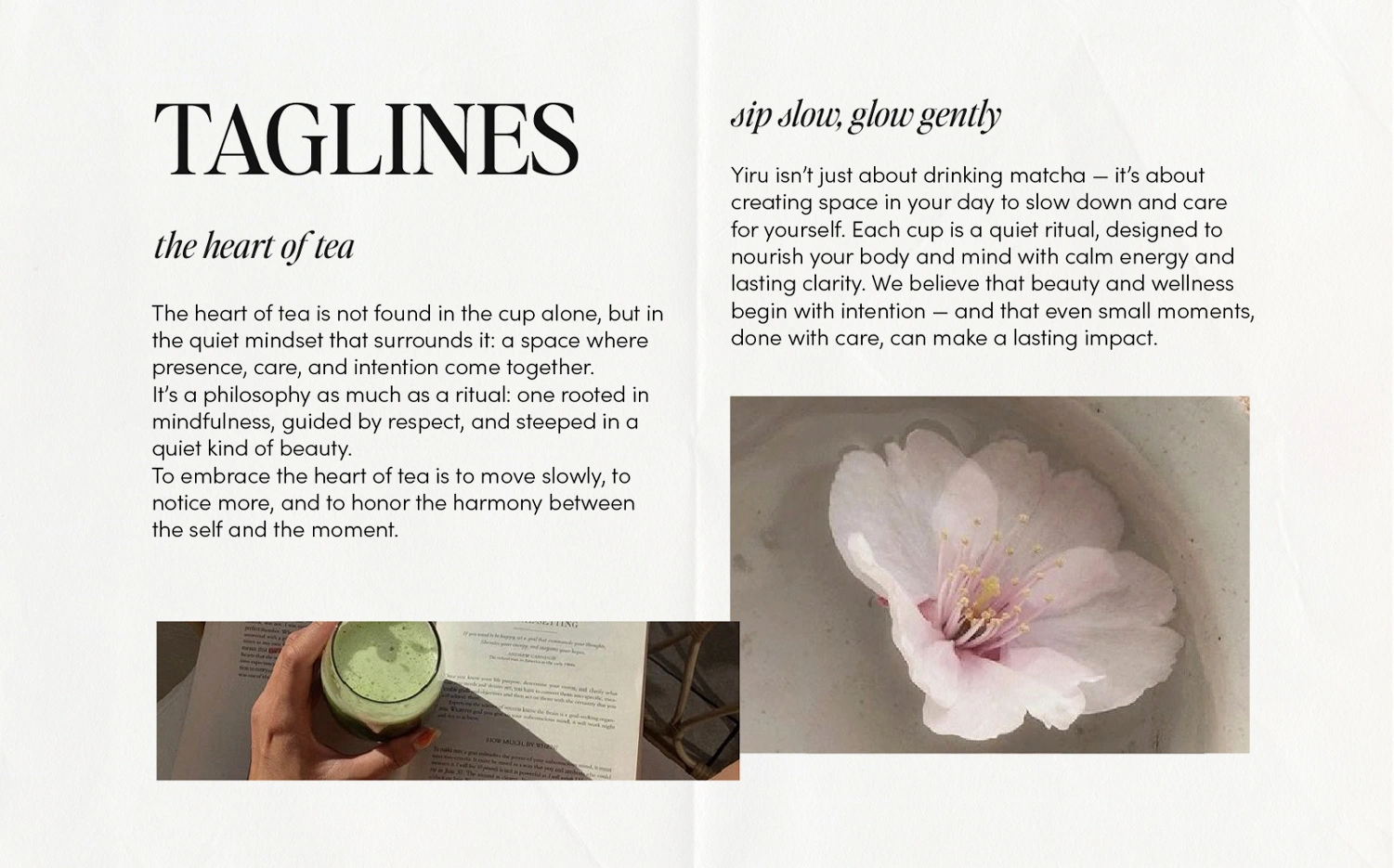 Project Overview: Yiru is a premium matcha brand built around authenticity, quality, and emotional connection. Created to fill a gap in the market, Yiru brings a fresh and thoughtful approach to matcha by combining high-quality Japanese imports with a strong focus on aesthetic, ritual, and customer experience.
