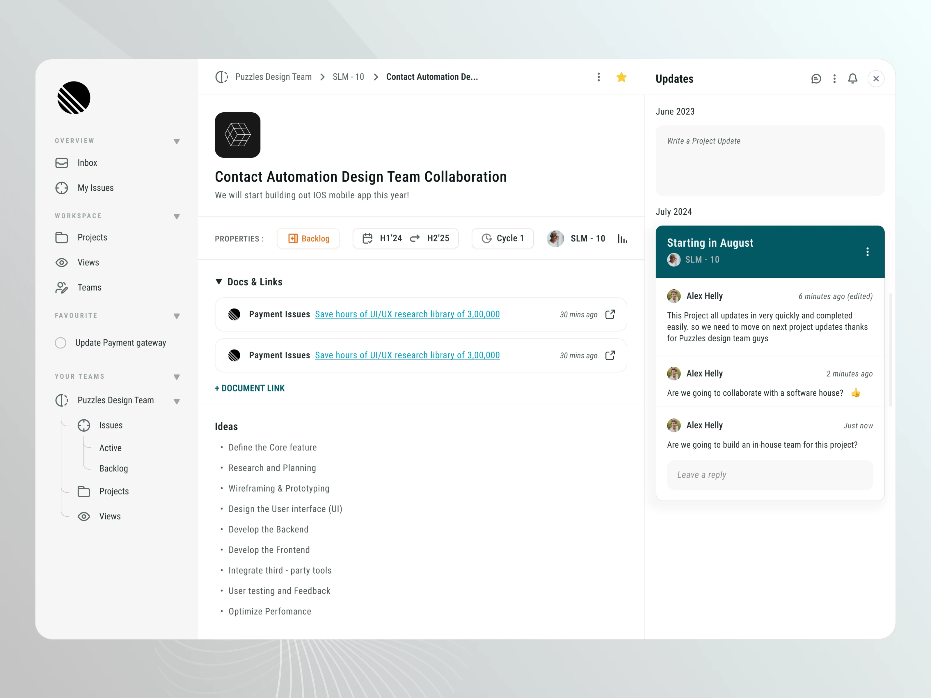 This project focuses on designing a modern project management and issue-tracking platform that helps product teams plan, track, and collaborate more efficiently.