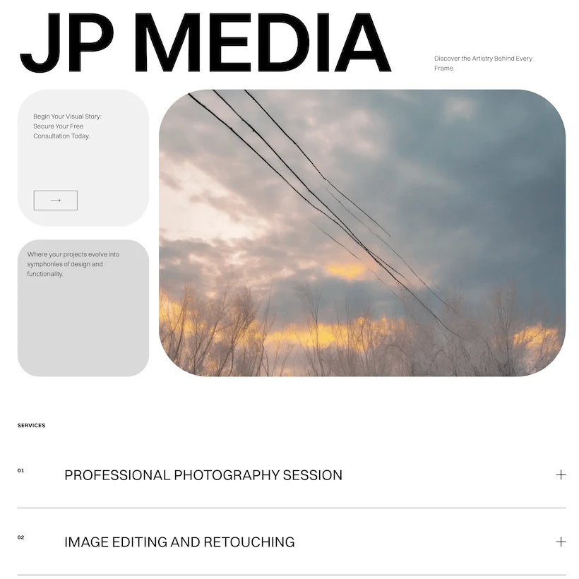 Using the insights from the research, I created wireframes that mapped out the core sections of the site, including the homepage, portfolio, about, and contact pages. The wireframes focused on a clean, easy-to-navigate layout with large image displays.