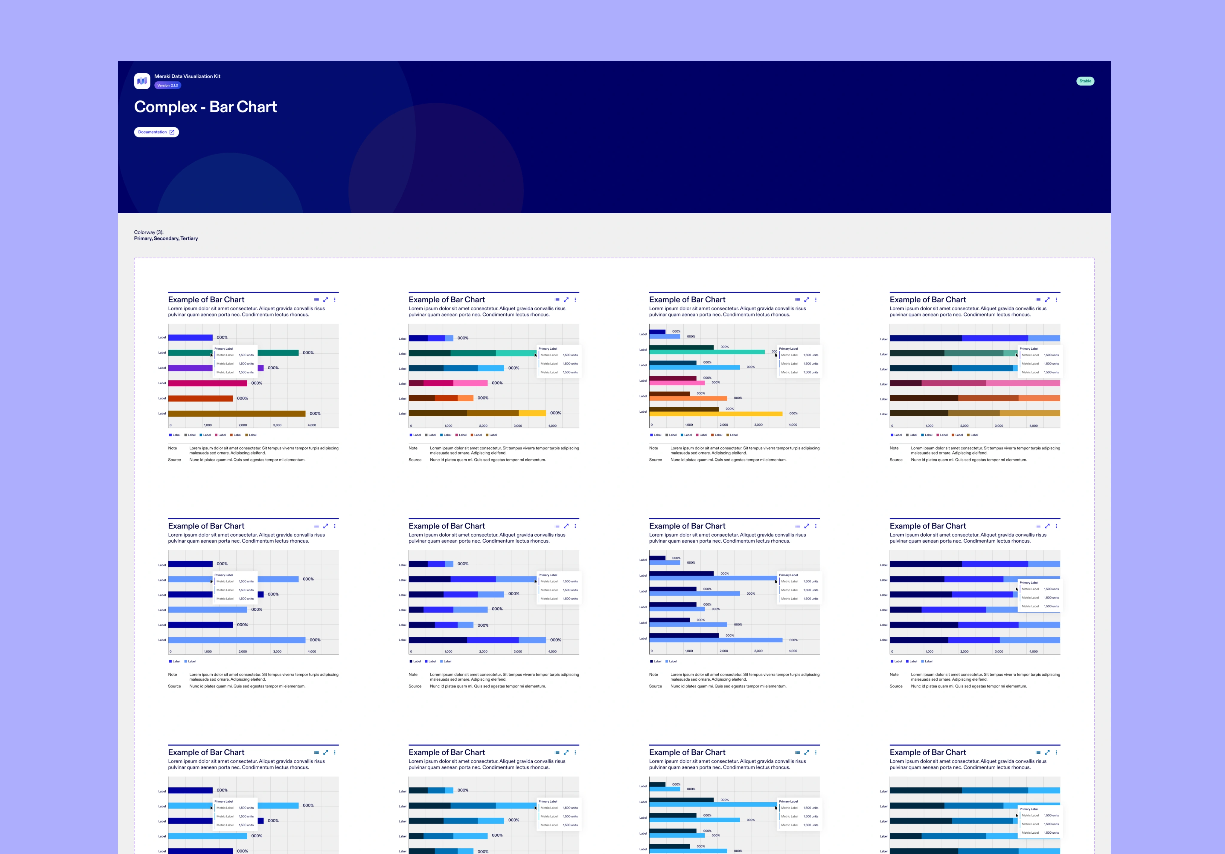 In working with the Pfizer, I was tasked to not only manage core components within their Meraki design library, but also create the very first Data Visualization tools which are utilized internally by both design and development teams to create various metric, analytic and data dashboards and layouts.