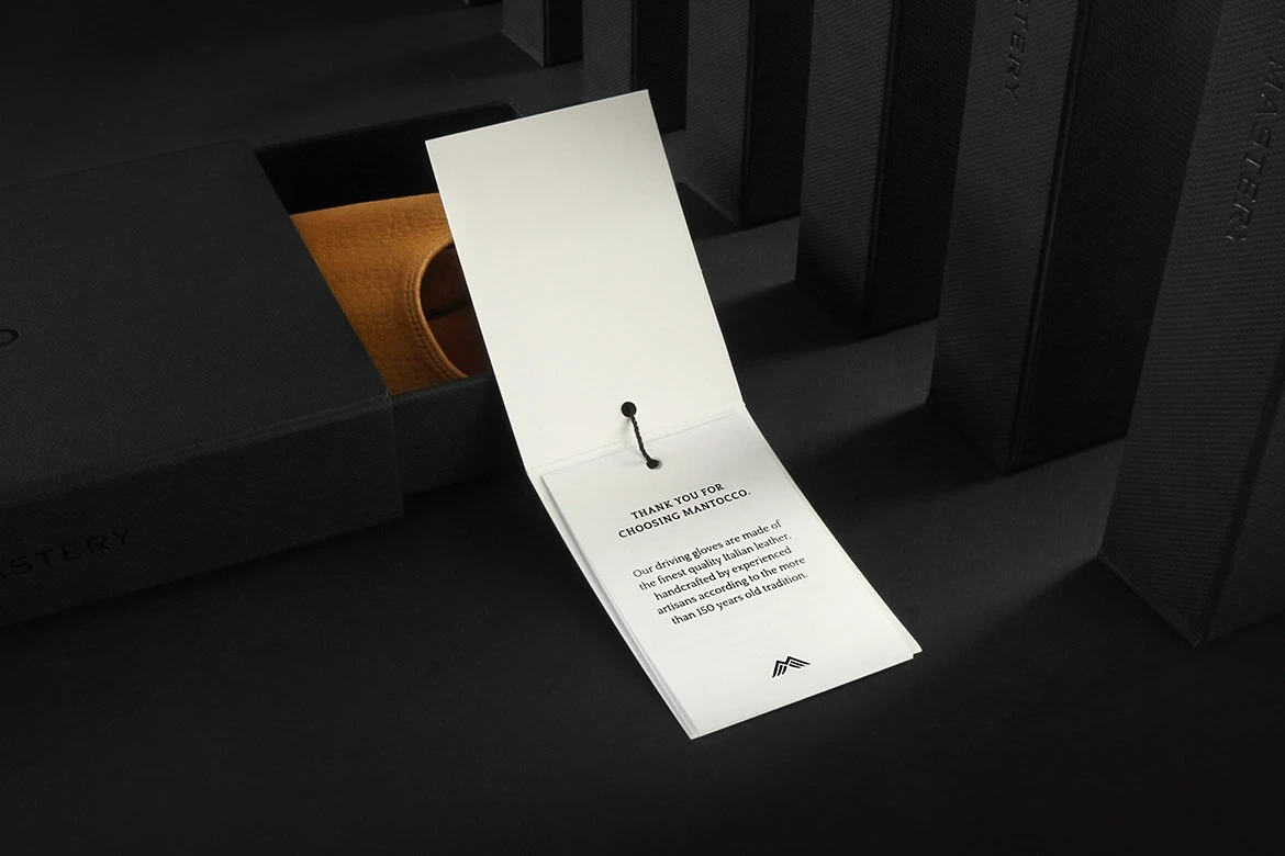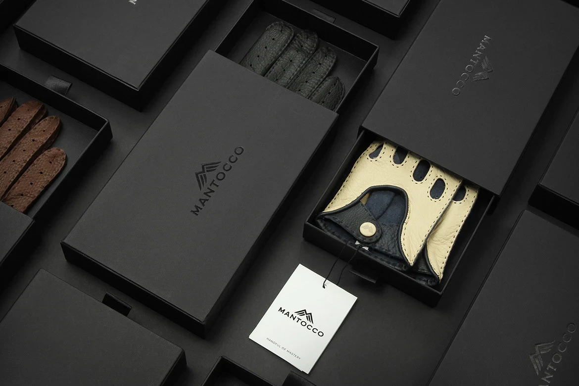 The newly developed Mantocco brand needed sophisticated packaging that would reflect the seriousness and luxury of handmade leather gloves. Considering the handmade aspect, the idea is to create a customized package with maintenance manuals that will suit individual glove models depending on their dimensions (women's/men's models).