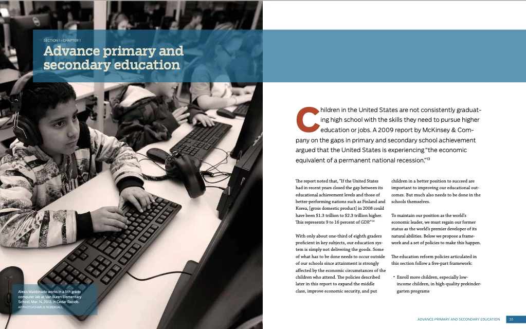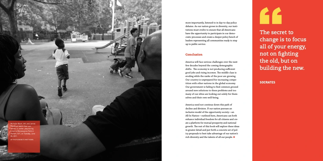 I worked on dozens of templated report layouts in my time as a designer at the Center for American Progress, but these two were unique projects. I did all photo research and editing, graphics and layouts, and worked with vendors to ensure on time delivery of printed copies.