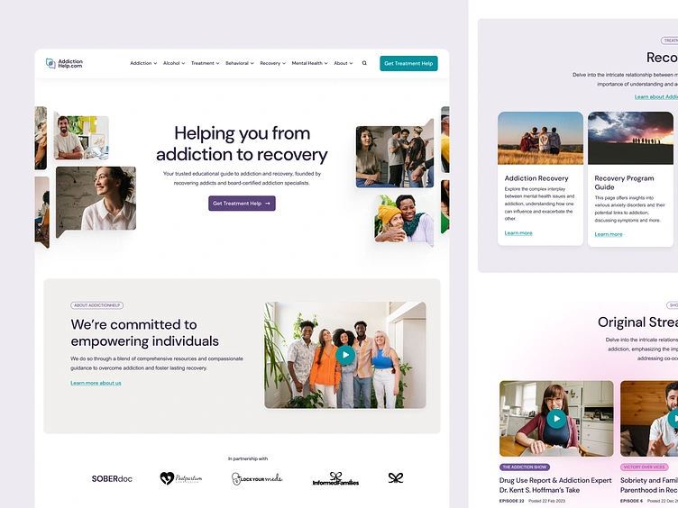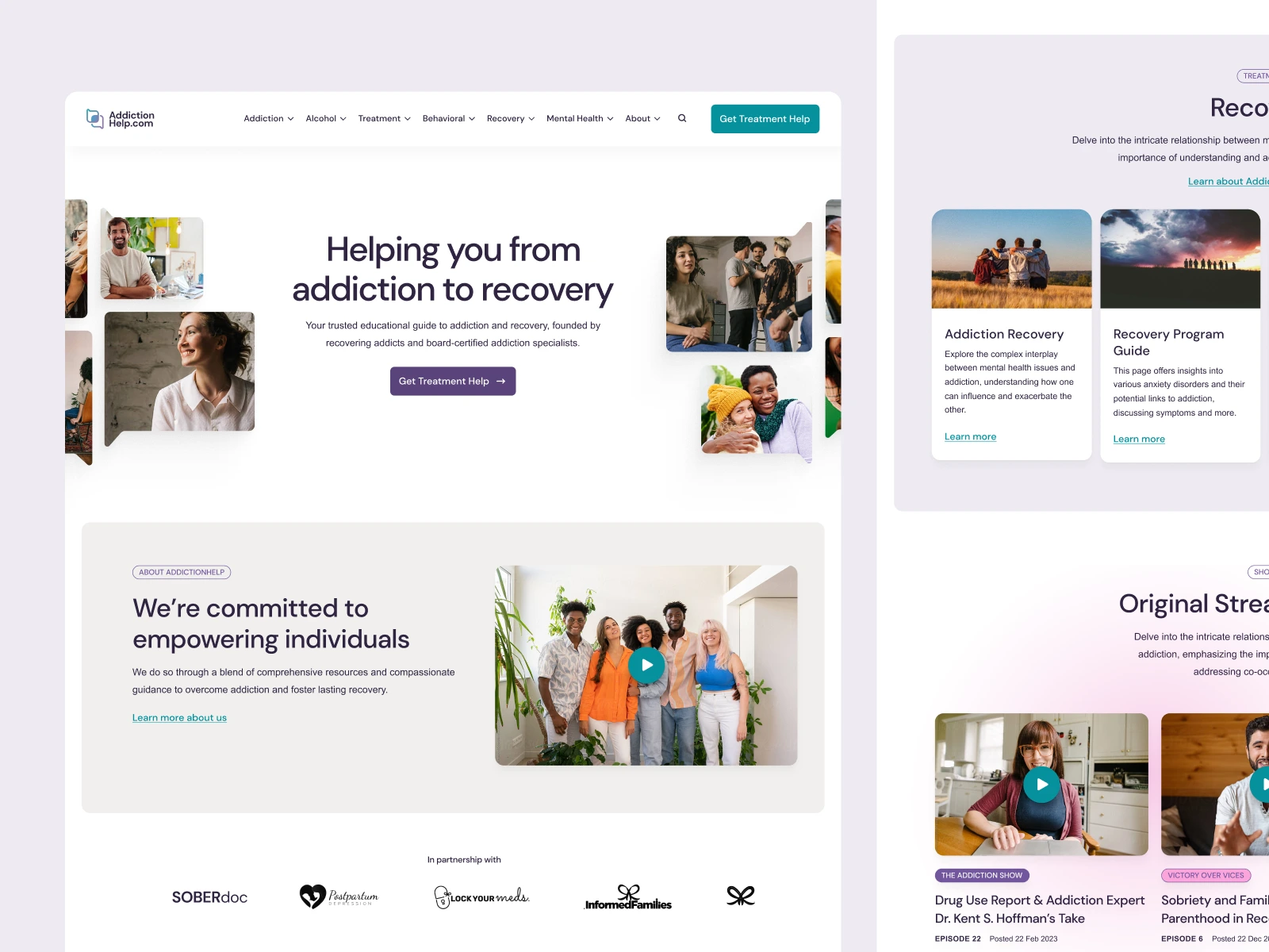 Redesign of the homepage for AddictionHelp, which aims to educate and help individuals go through hardships such as alcohol and drug addictions.