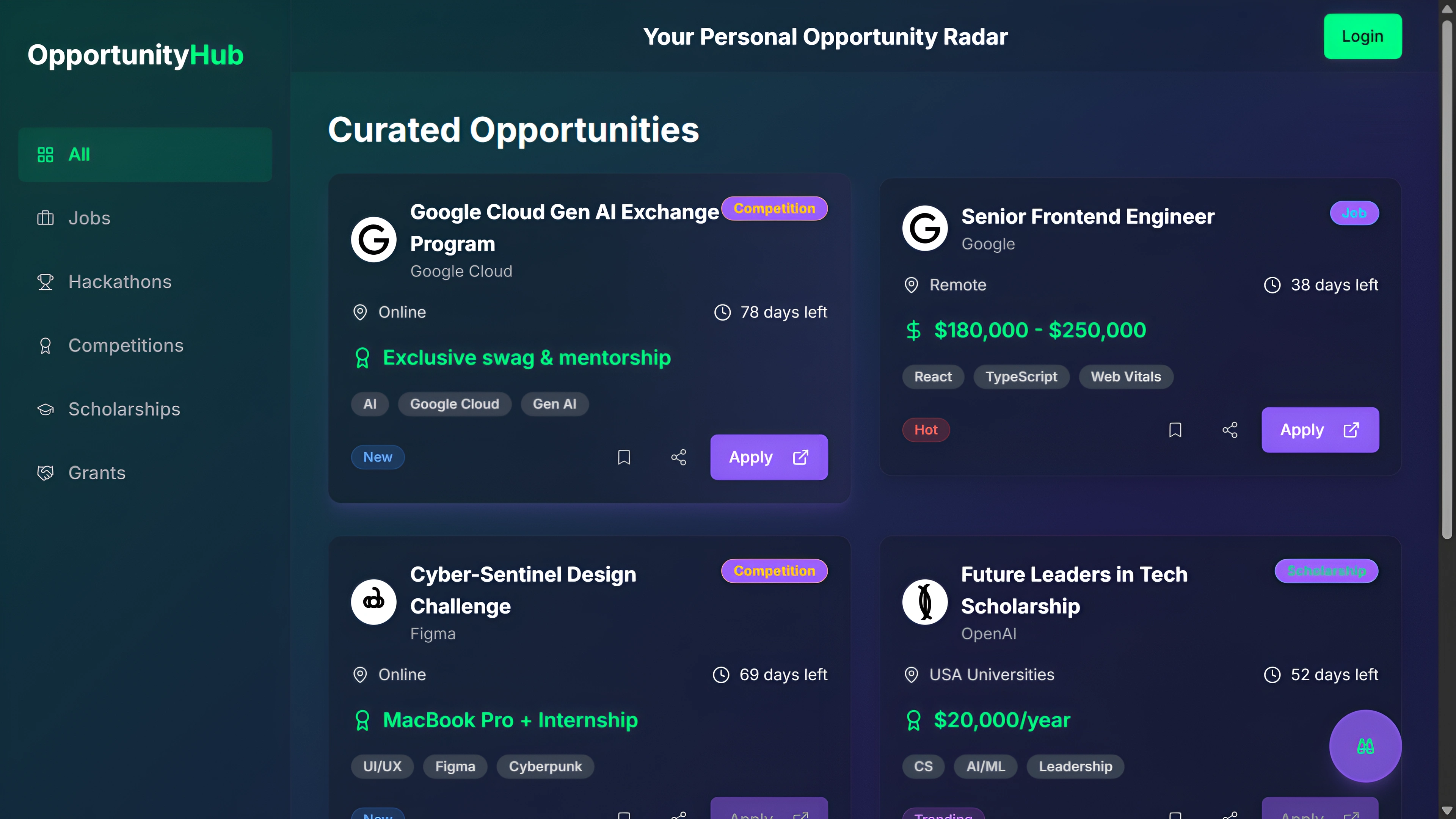 Built an AI-powered platform for opportunity discovery using modern web technologies.