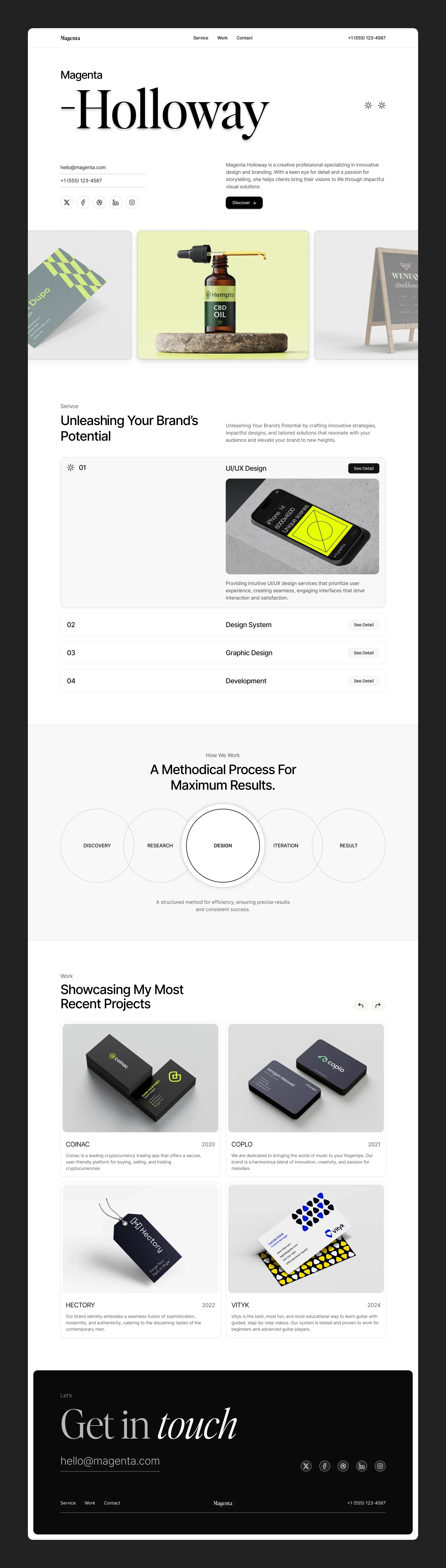 Step into the world of Magenta, a beautifully crafted personal portfolio landing page designed to showcase creativity and innovation. Whether you're a brand seeking captivating designs or an individual looking for visual storytelling expertise, Magenta is your gateway to extraordinary creative solutions.